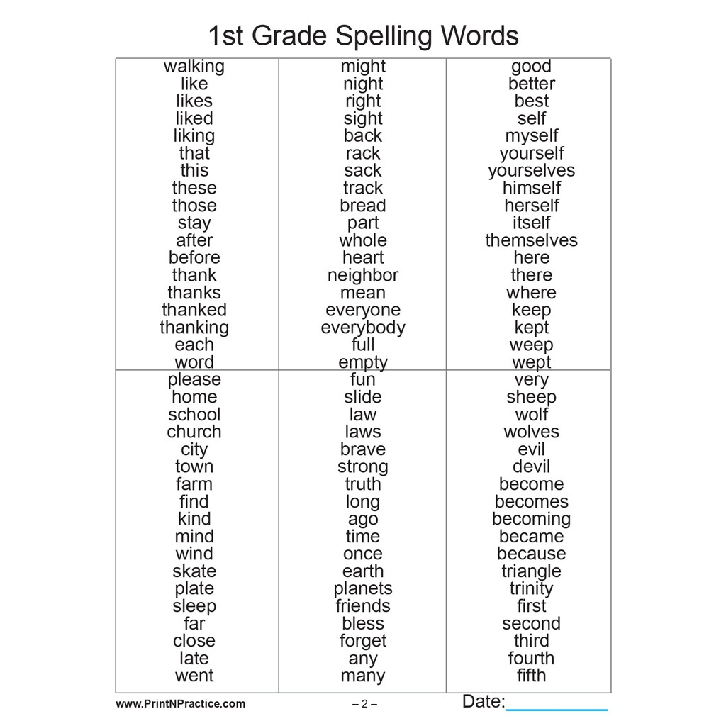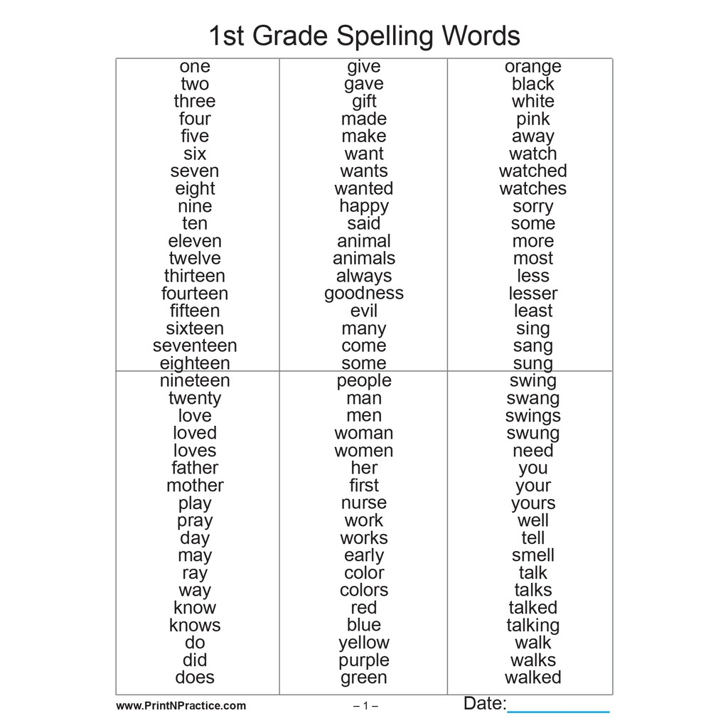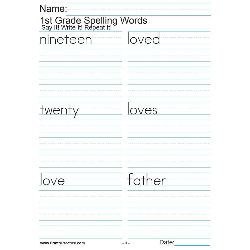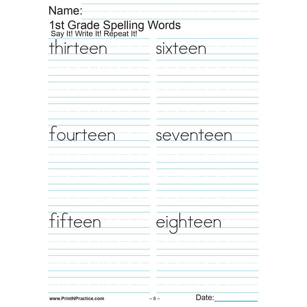 42, PAGES Grade 1 SPELLING WORKBOOK (2 pages per sheet)