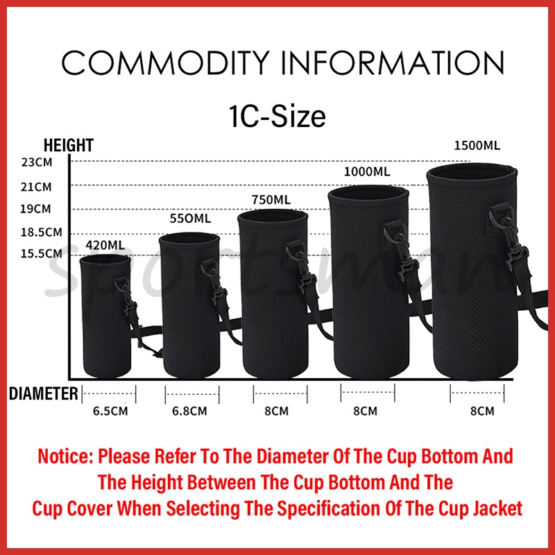 420Ml-2000Ml Water Bottle Carrier Insulated Cover Bag Holder Strap Insulated With Travel Strap Black Insulated Bottle Carrier Water Bottle Bag