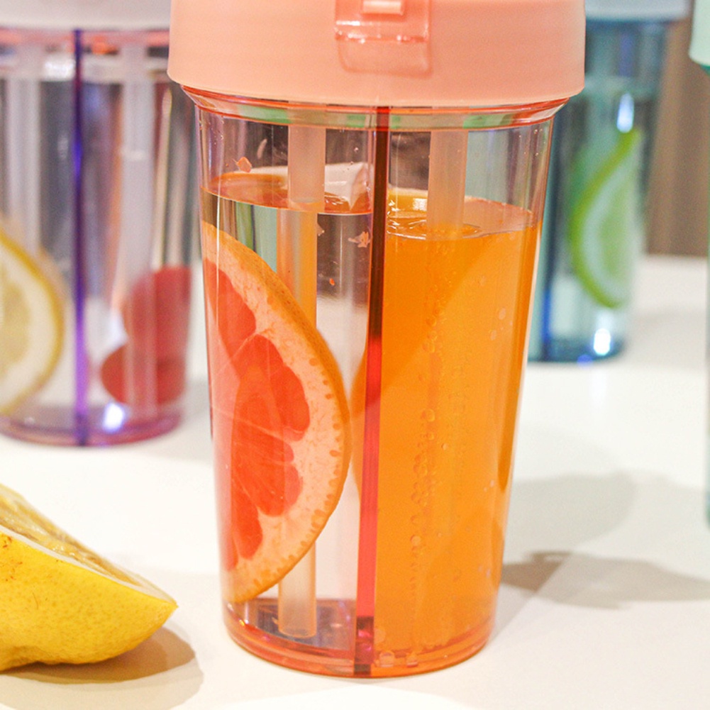 420ml Portable Drinking Water Cup Creative Double Plastic Straw Cup Ice Cup Water Bottle Tumbler Juice Milk Cup Dual Use (fenghao.ph)