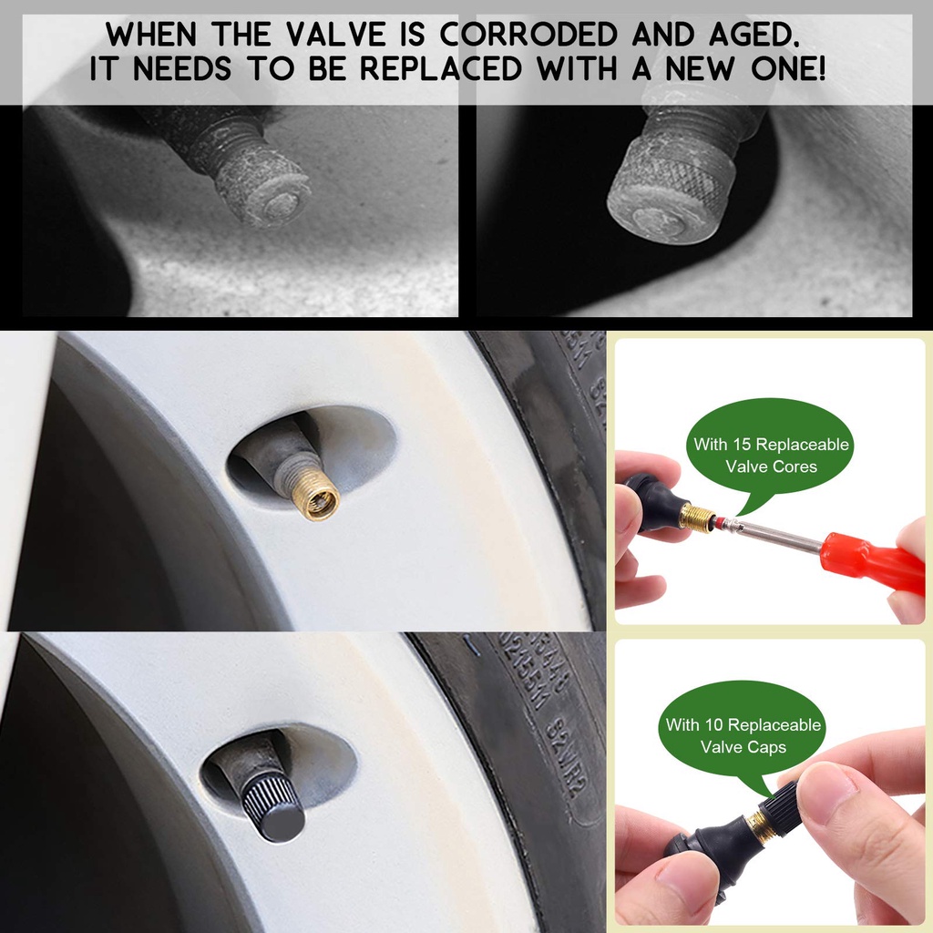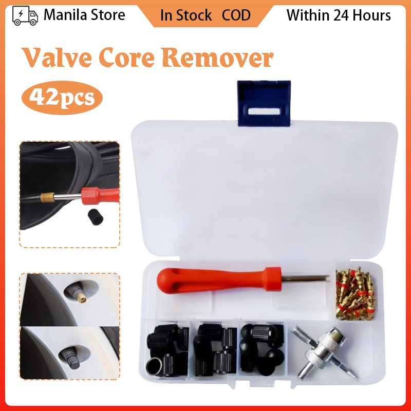42Pcs Tire Valve Repair Tool Set Brass Valve Cores Valve Stem Remover Valve Cap For Car Motorcycles
