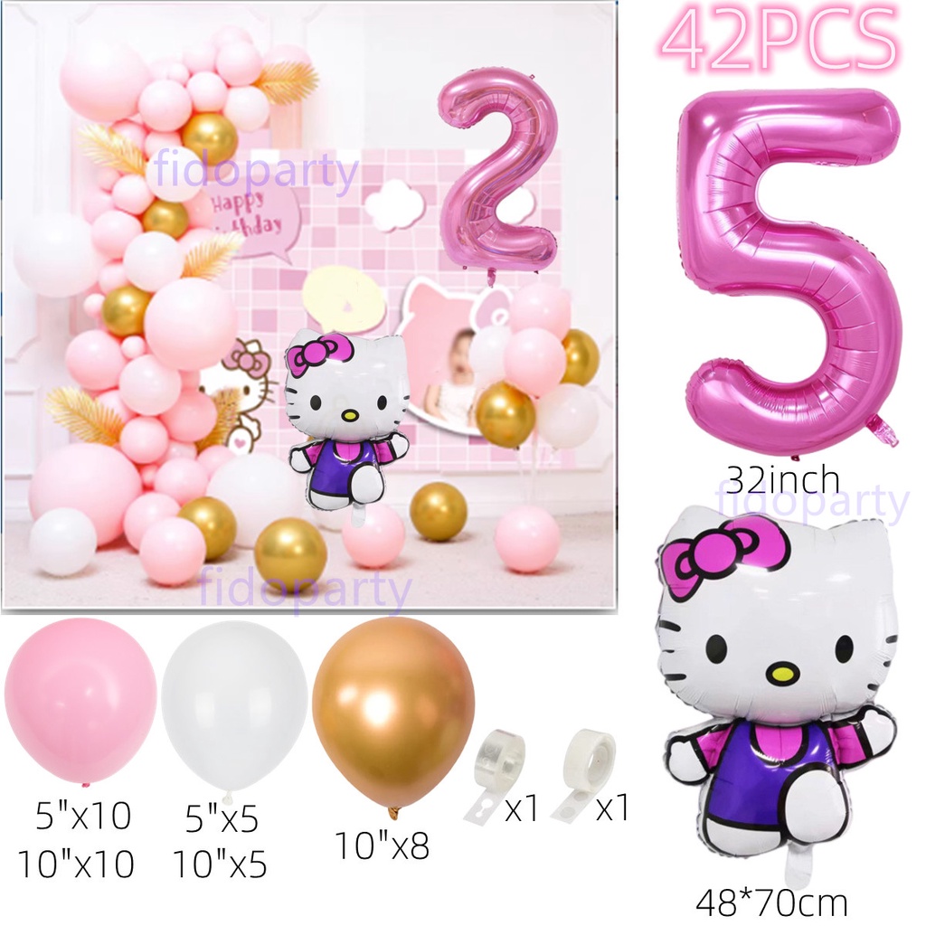 42pcs Hello Kitty Balloons Set 32inch Gradient Number Balloon Pink Latex Balloons Party Decorations Hello Kitty Party Needs