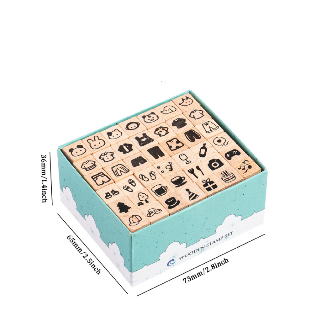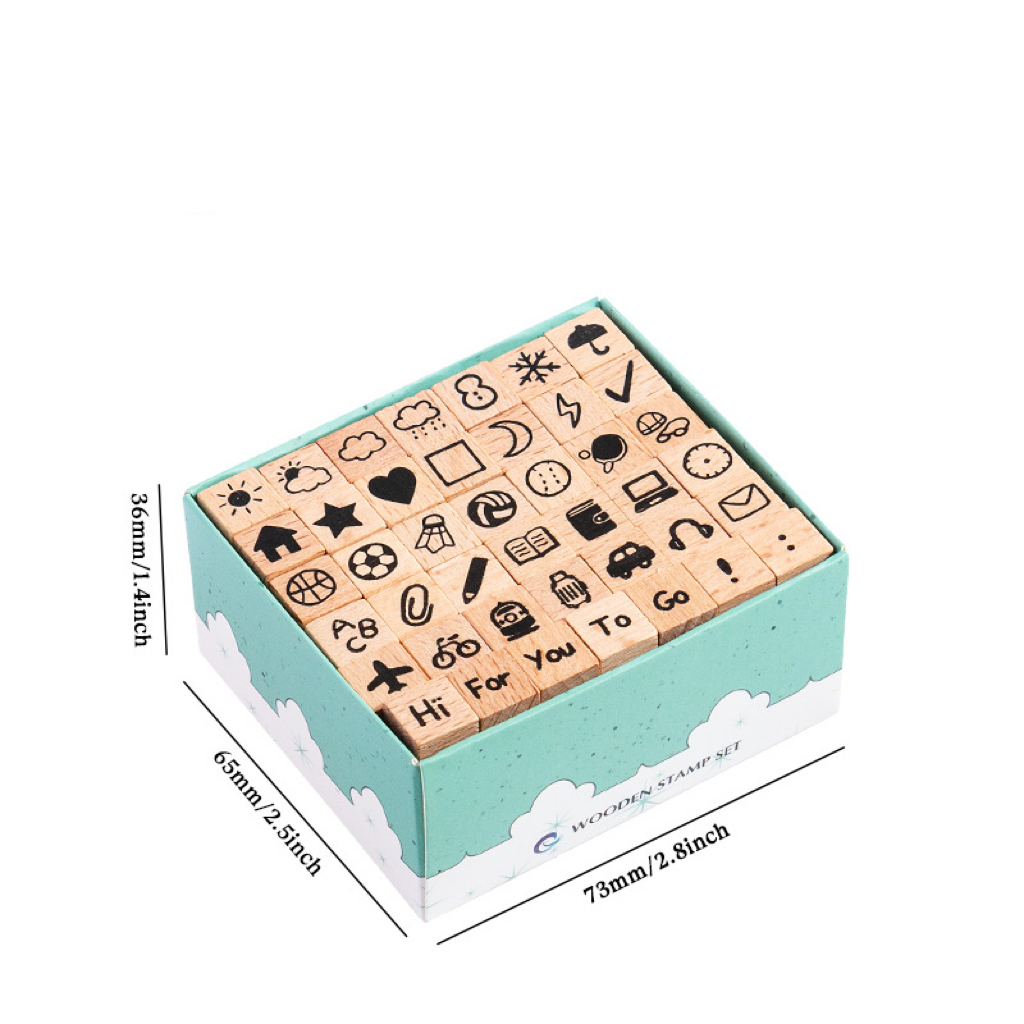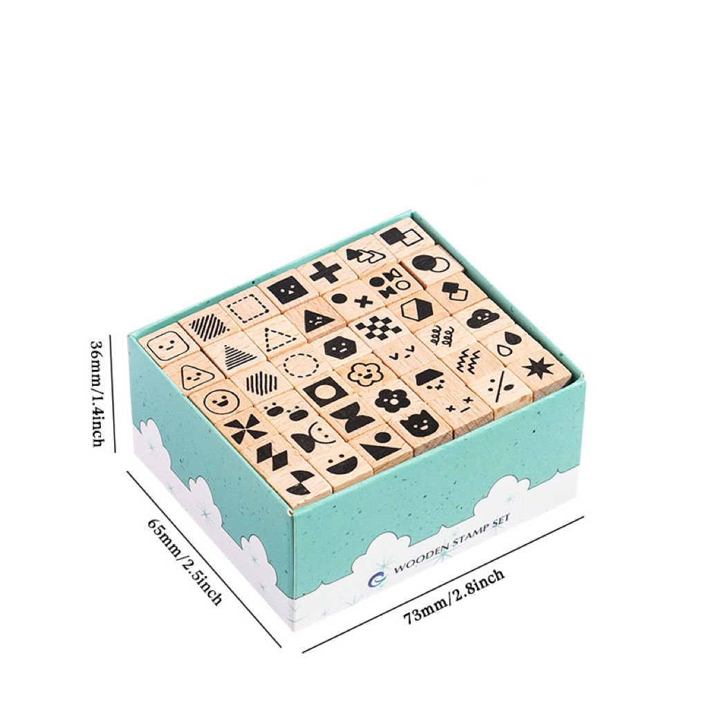 42pcs beech wood stamps digital letters geometric shapes small expression basic stamps