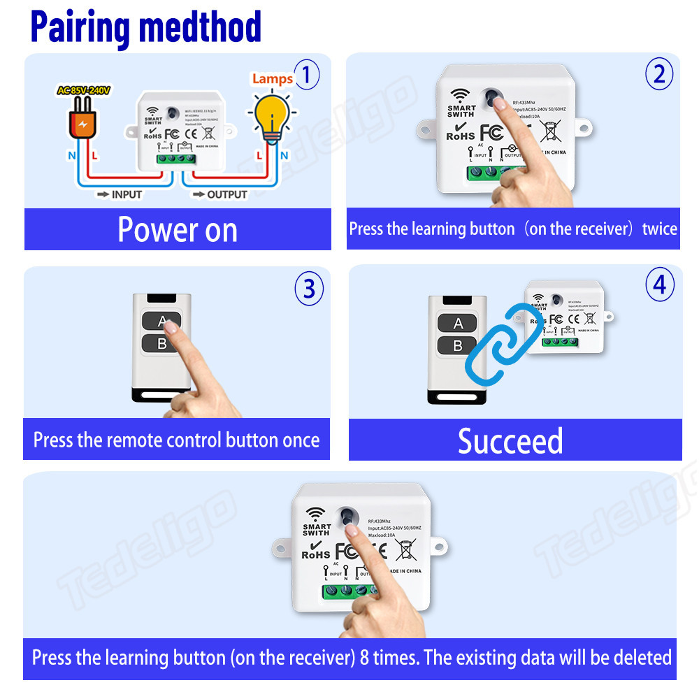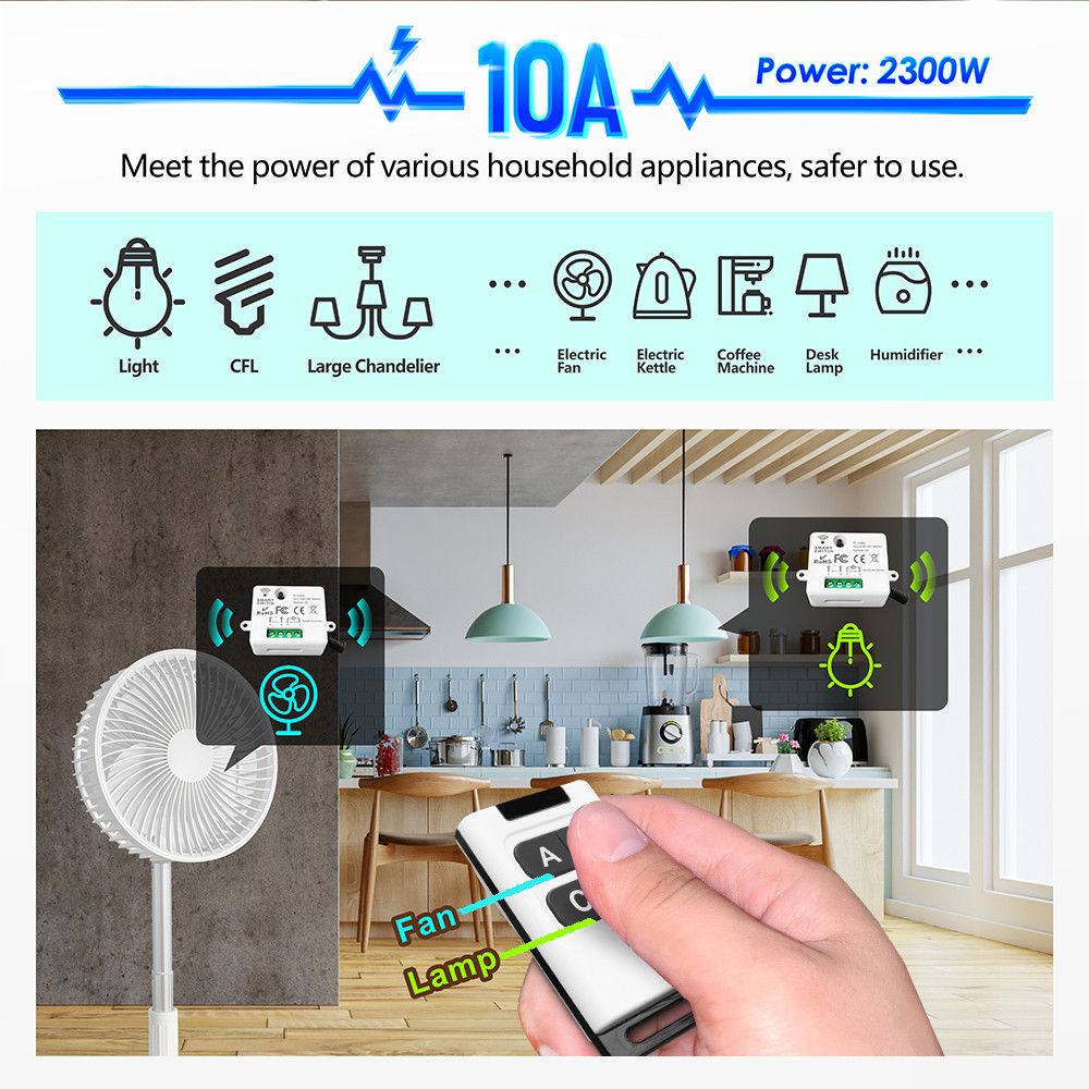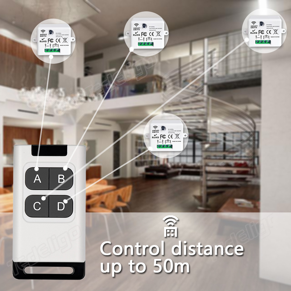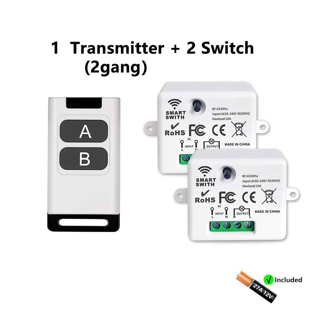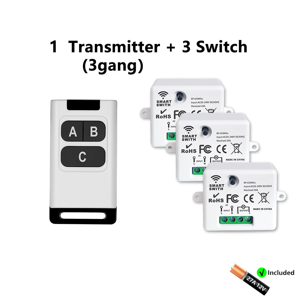 433MHz Wireless Remote Control Light Switch 220V 110V 10A Relay Receiver Control with 1/2/3/4gang Transmitter for Lighting Led