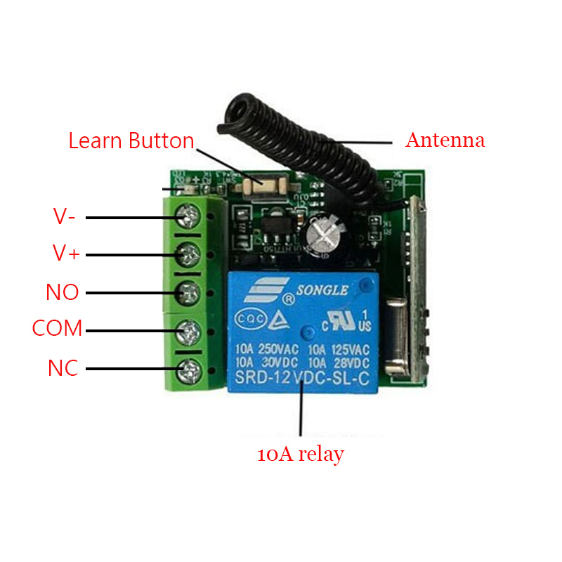 433Mhz RF Remote Control Wireless Switch Transmitter DC 12V 1CH Relay Receiver Module Electronic Lock Control