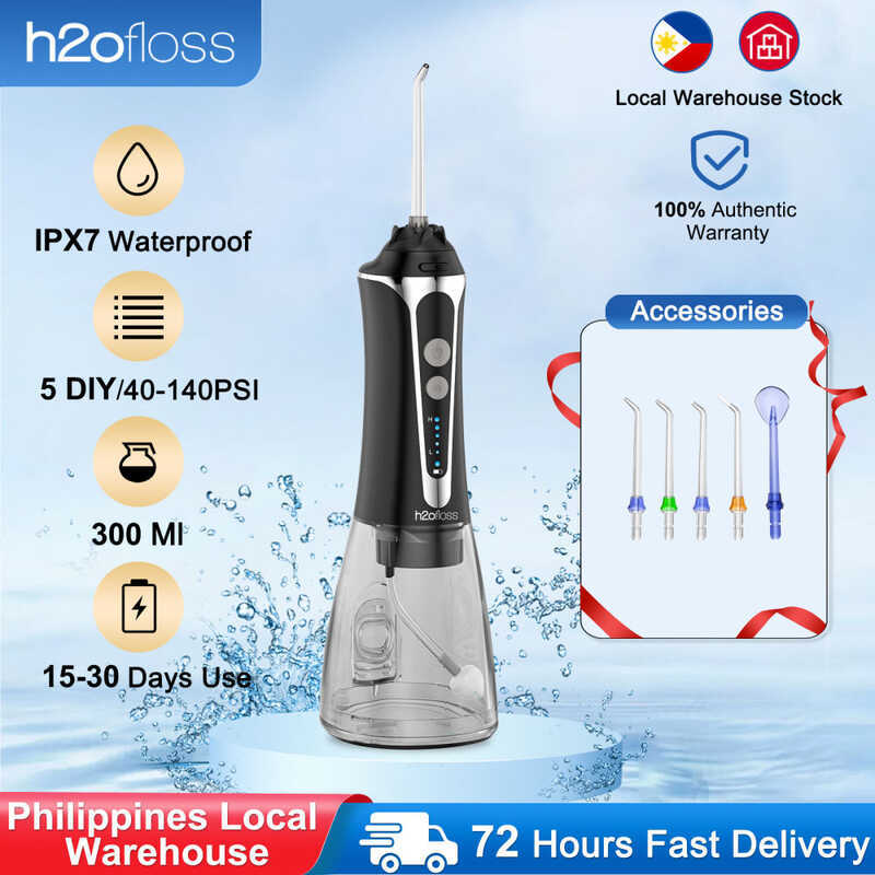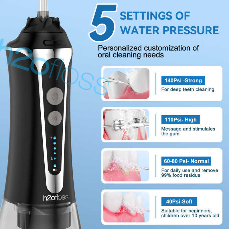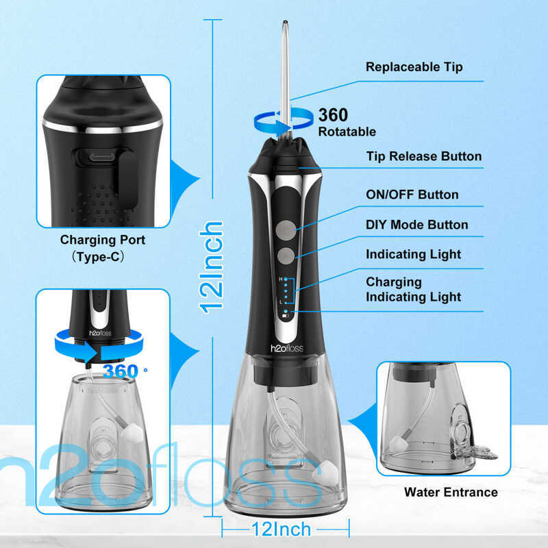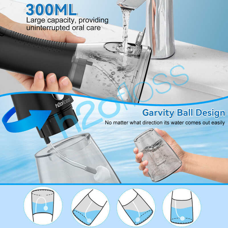 Water Dental Flosser For Teeth, H2ofloss Cordless Oral Irrigator In 5 Modes , 300Ml Usb-C Tooth Brac