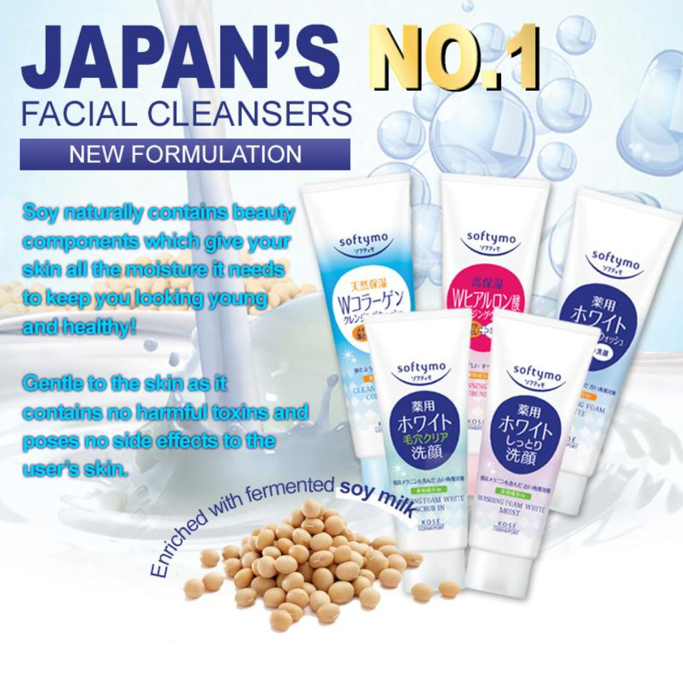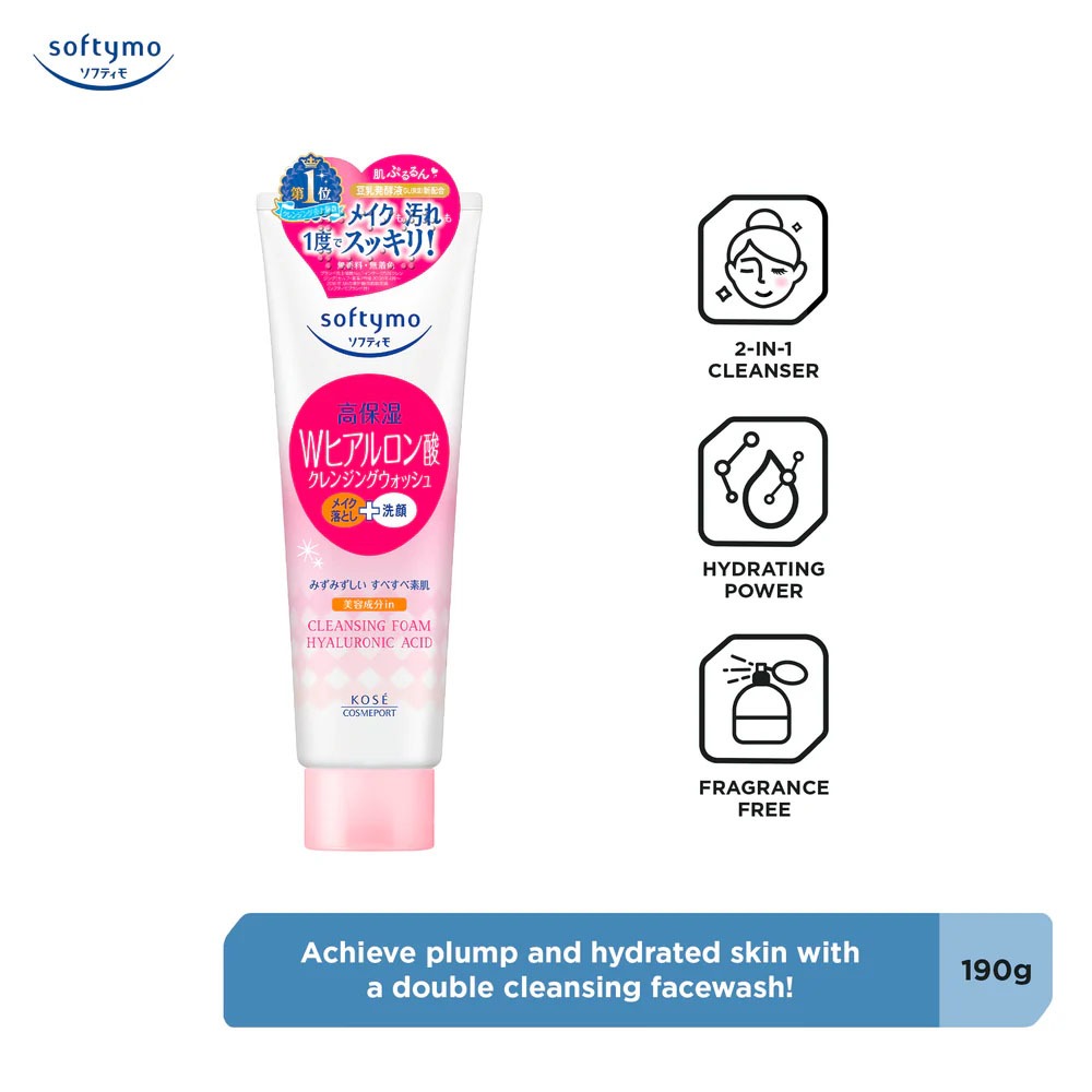 Kose Softymo Cleansing Foam 2 in 1 Makeup Remover Face Wash 190g Collagen/ White/ Hyaluronic Acid/ Ceramide Direct from Japan