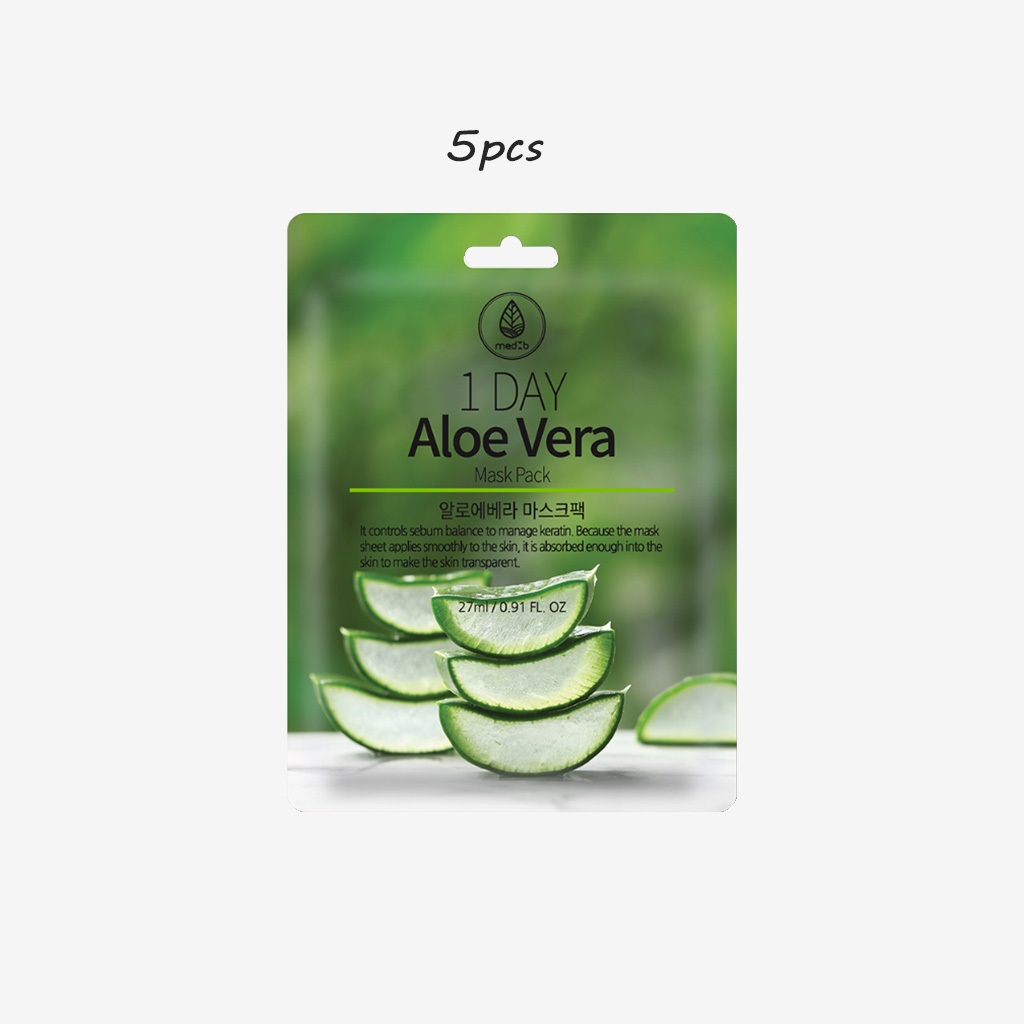 MEDB 1DAY MASK PACK 27ml*5pcs (Aloe Vera/Viramin C/Pomegranate/Snail/Hyaluronic/Collagen/Tea Tree/Honey/Placenta/Syn-Ake)