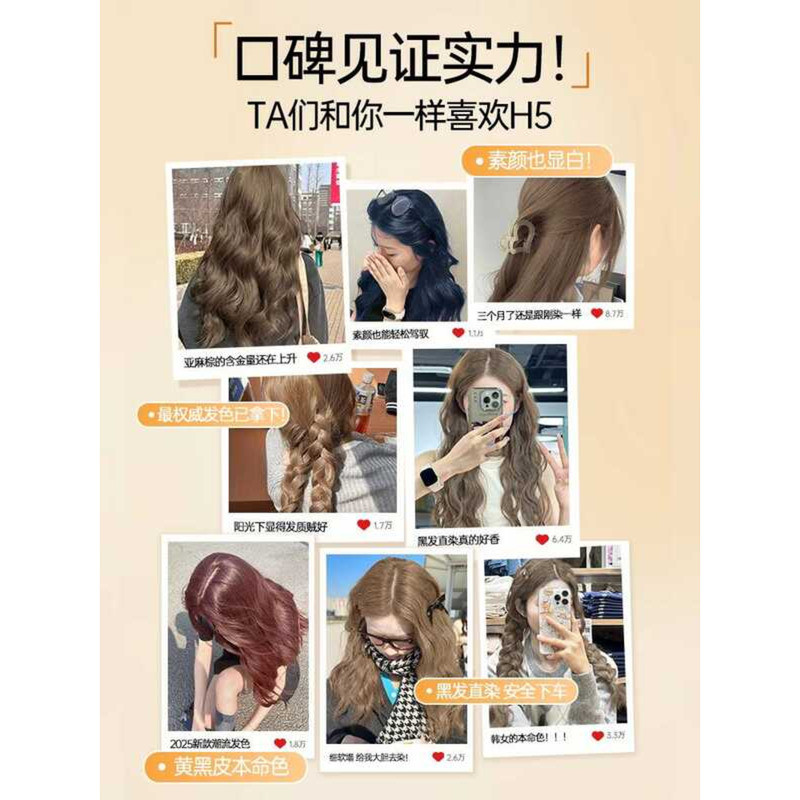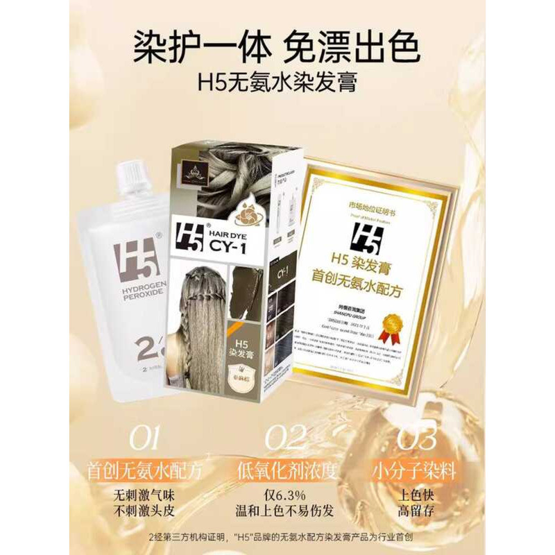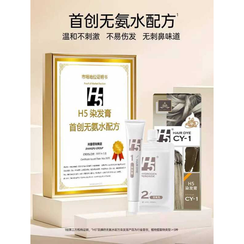H5 Cream Plant-Based Pure Hazelnut Gray Black Tea Color Cold Brown Hair Dye for Men and Women Home