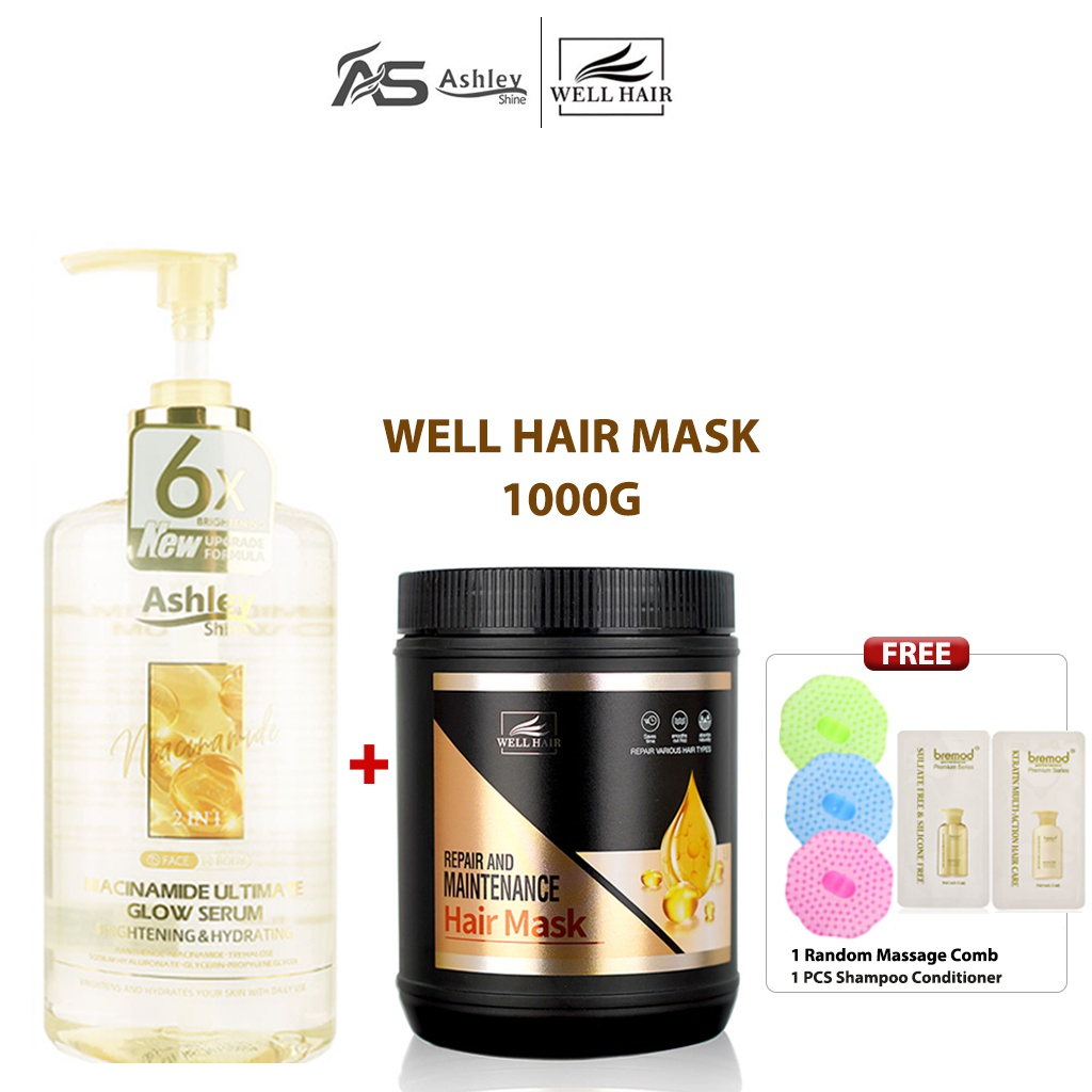 Ashley Shine NIACINAMIDE Pure Serum Face and Body Whitening & WELL Hair Mask Repair Damage