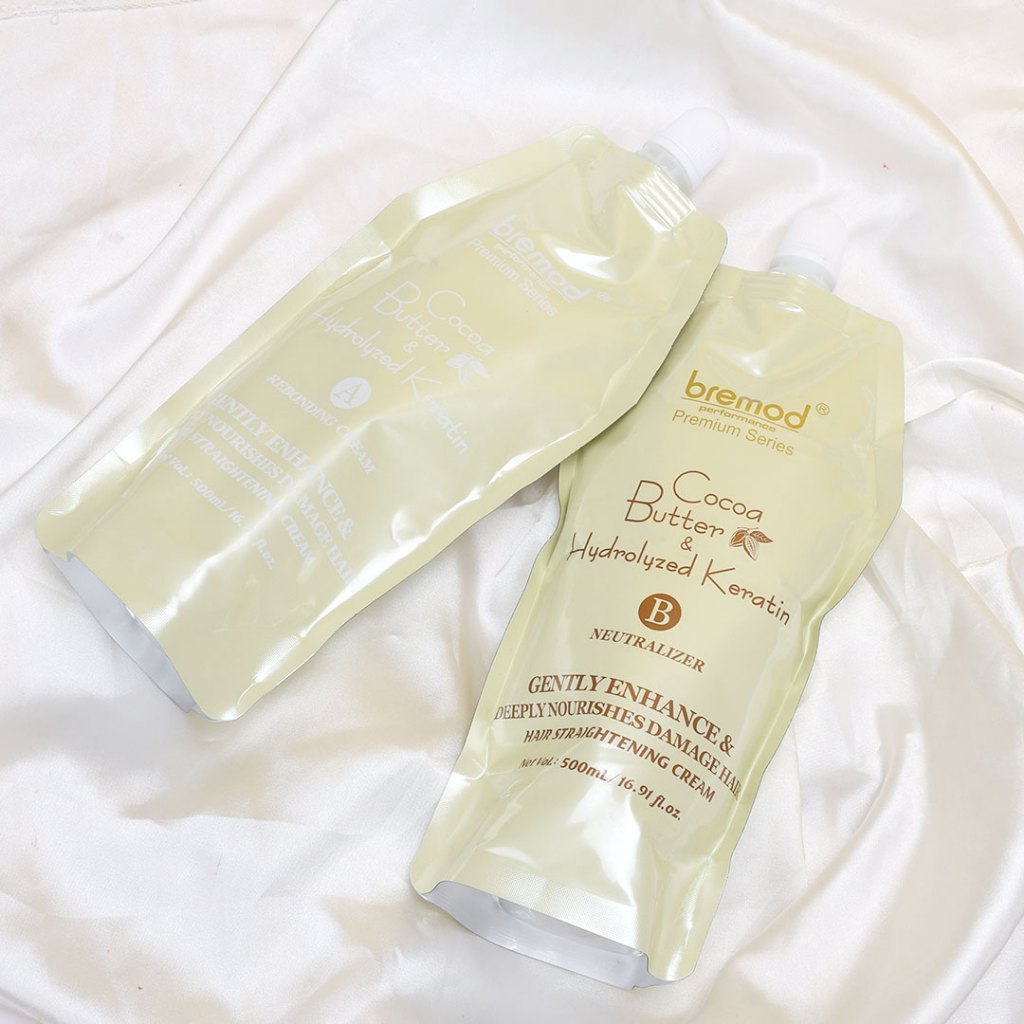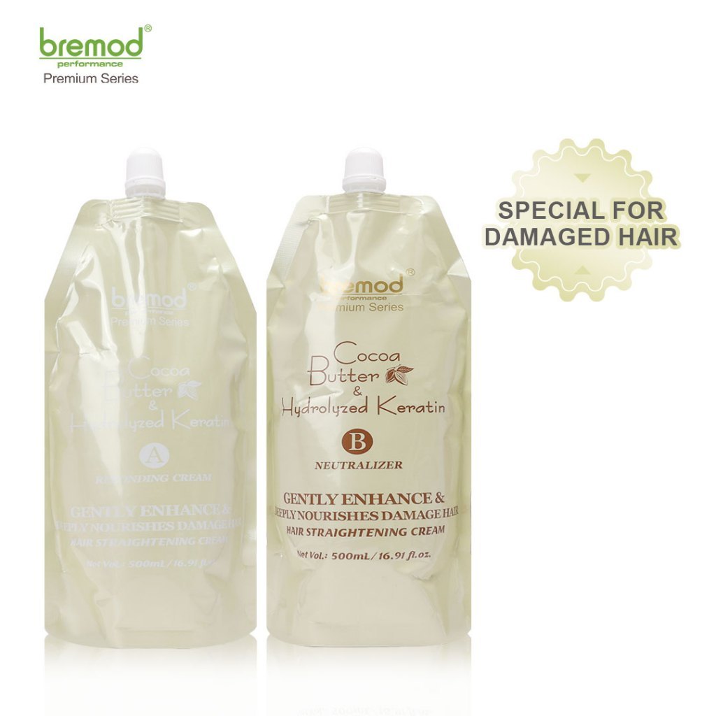 Bremod Premium Keratin Hair Straightening Rebonding Cream Cocoa Butter Hydrolyzed 500ml BR-T016
