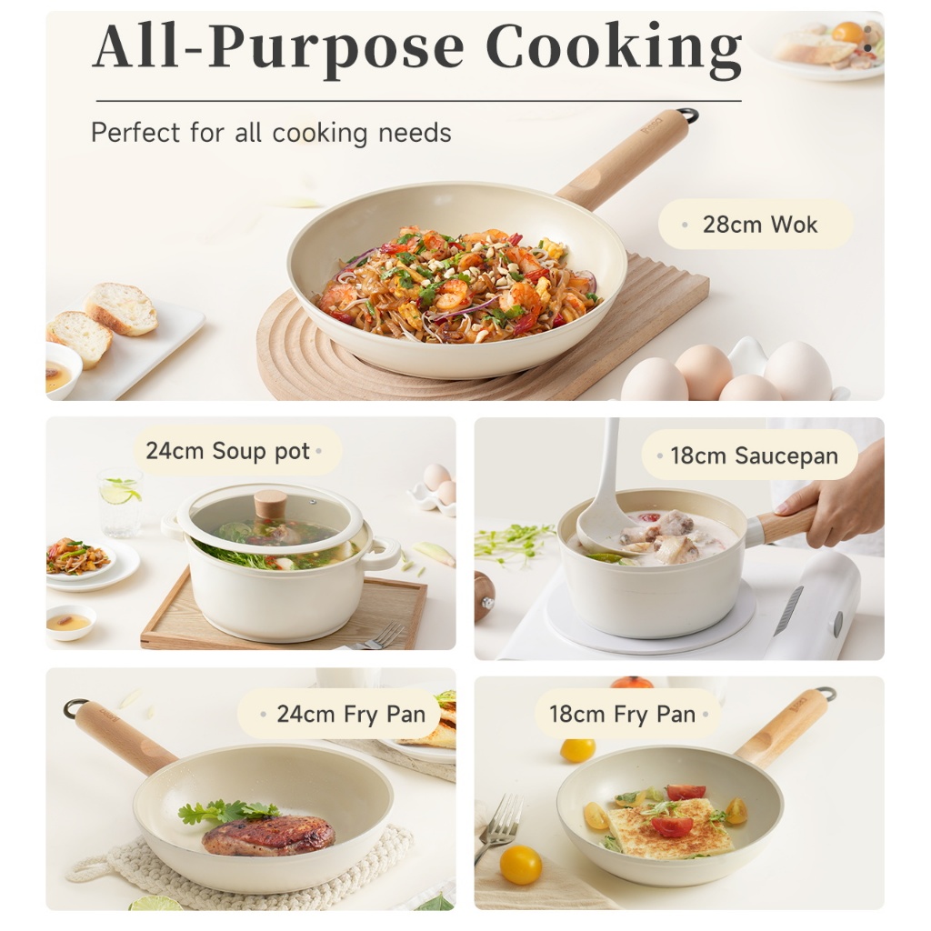 Simplus Nonstick Pots and Pans Frying Pan/Wok/Soup Pot Cookware Ceramic Coating for Induction Cooker & Gas Stove