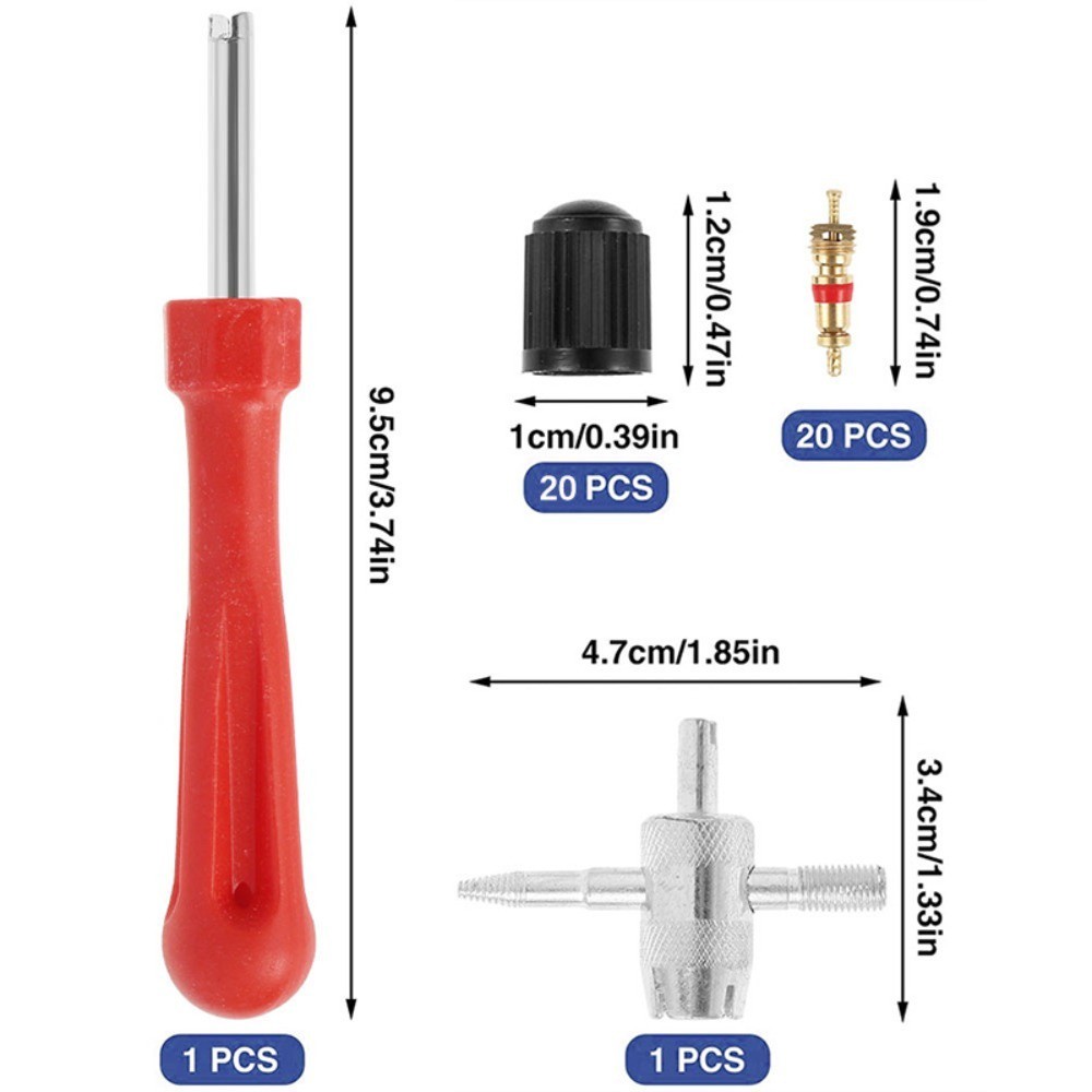 44PCS Tire Valve Repair Tool Set Brass Valve Cores Valve Stem Remover Valve Cap For Car Motorcycles