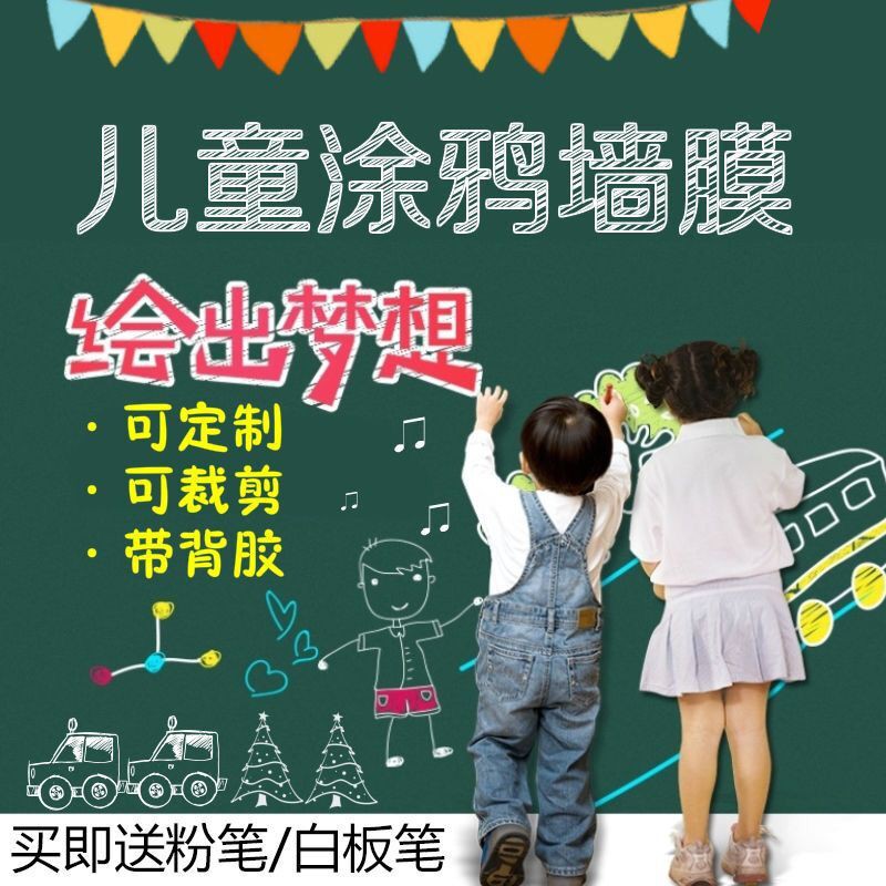 45*200cm Blackboard Whiteboard Wall Sticker Free Chalks Pen Cover PVC Waterproof Children Graffiti Writing Board Office Classroom Teaching Black Board