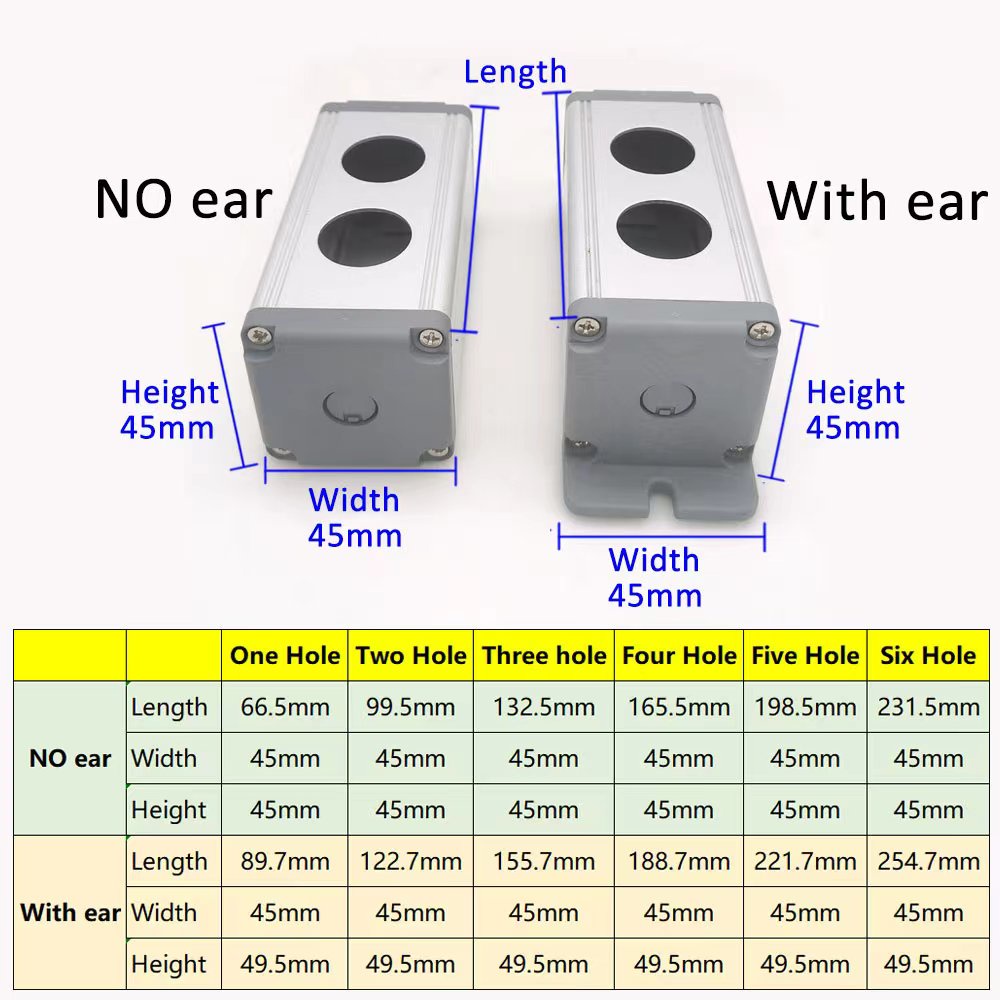 45*45mm 16mm 19mm 22mm Waterproof Aluminium push button switch box one hole three holes for Metal buttons Industrial Control Equipment
