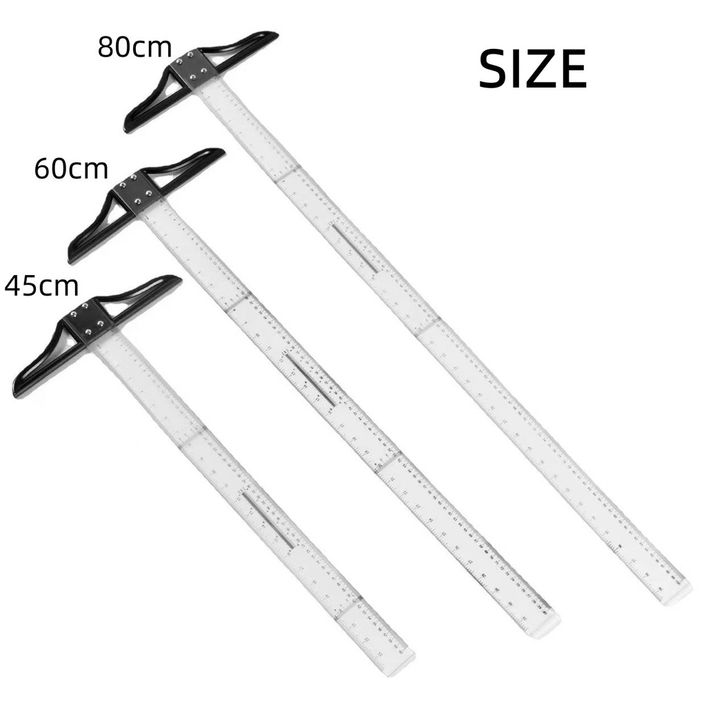45/60/80cm Plastic T Square Acrylic Graduated Ruler Drafting Detachable Head School Office Supplies