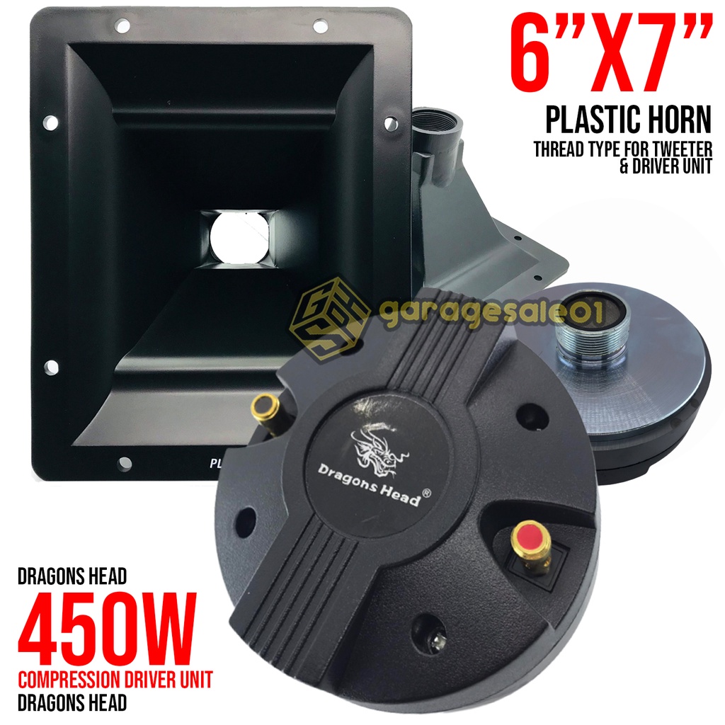 GS 450W Dragonhead Compression Driver Unit with 6"×7" Plastic Horn – Thread Type Heavy-Duty SET