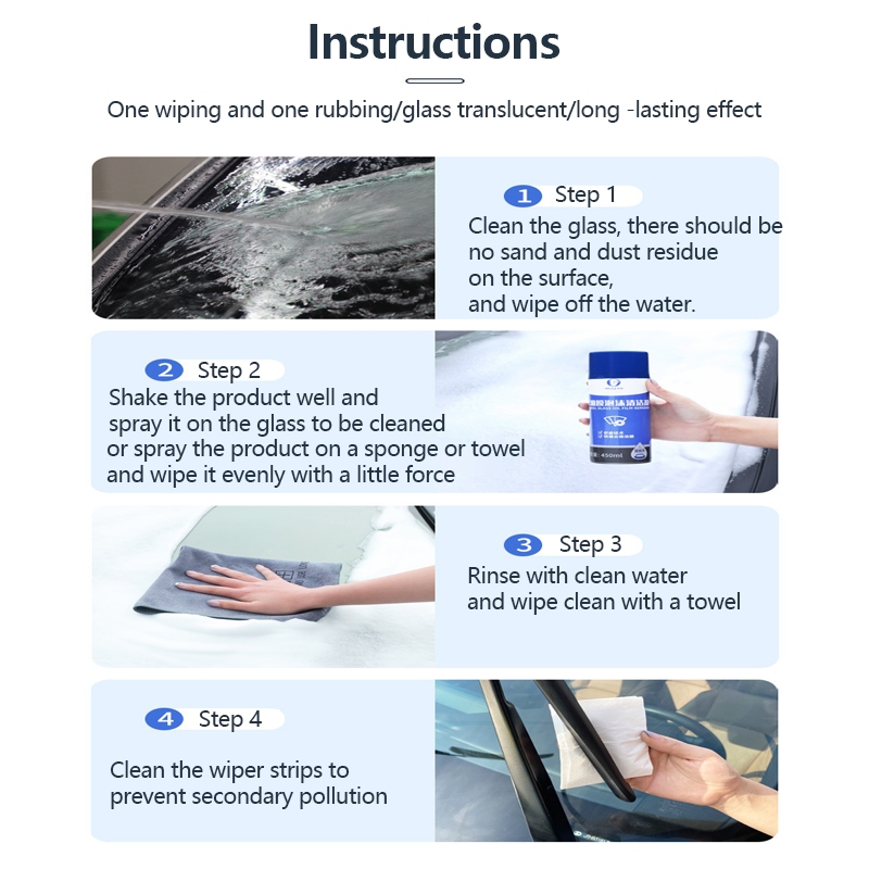 450ml Car glass oil film remover Car glass cleaner Acid rain remover for car glass window cleaner