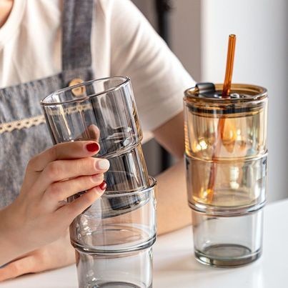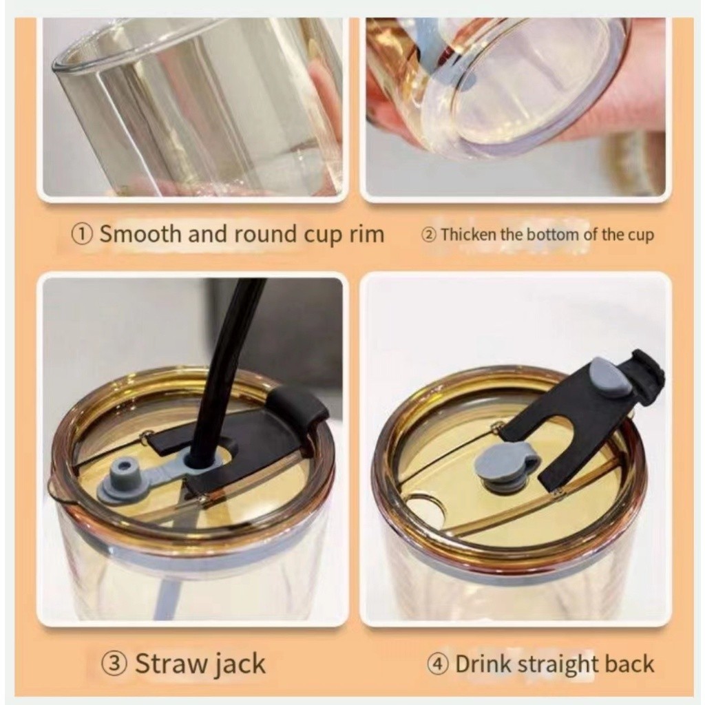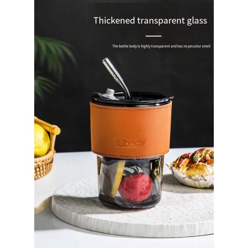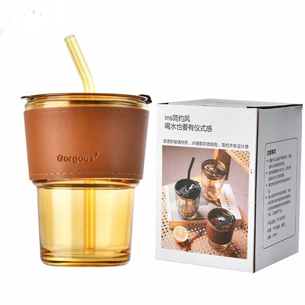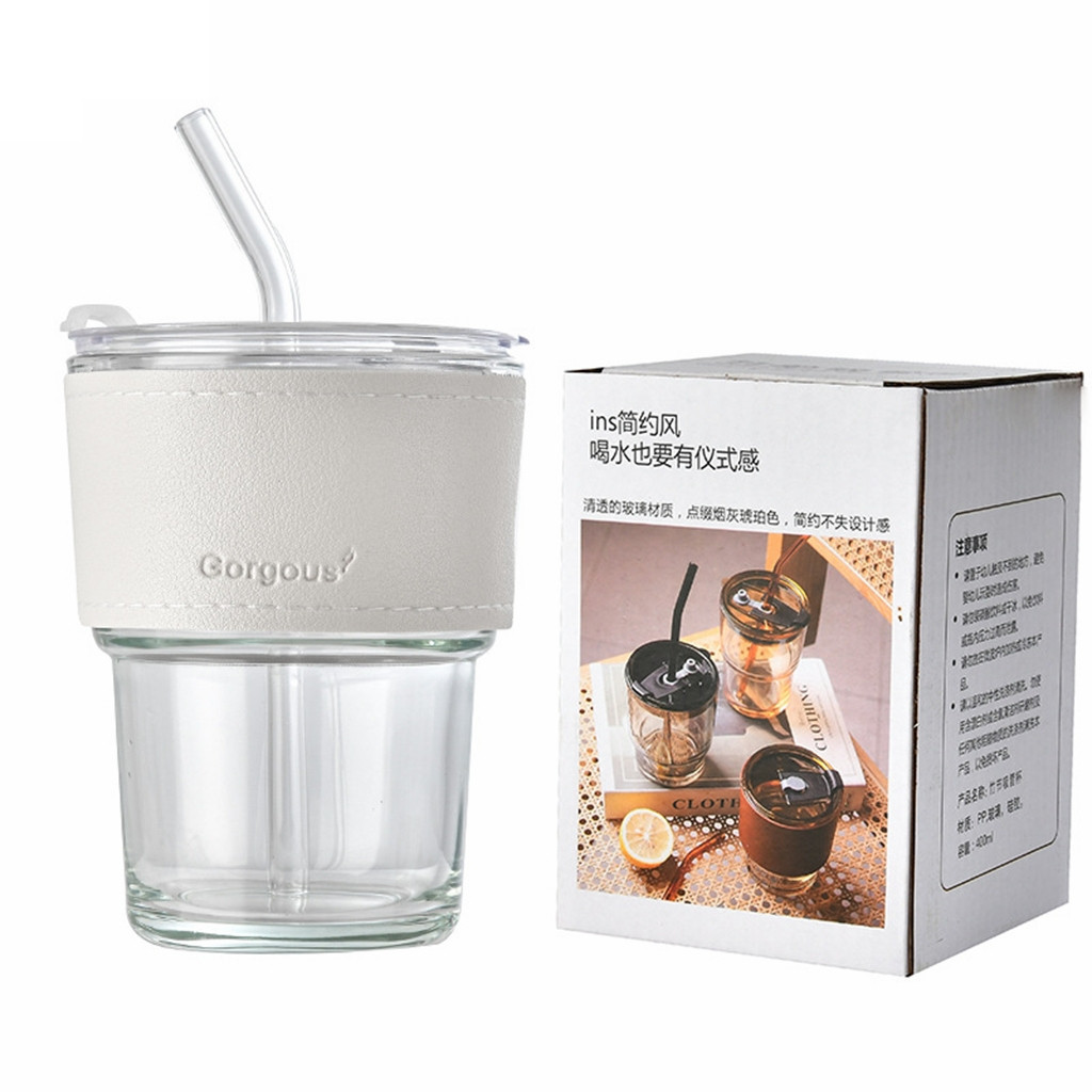 450ml glass straw coffee cup straw water cup glass cup