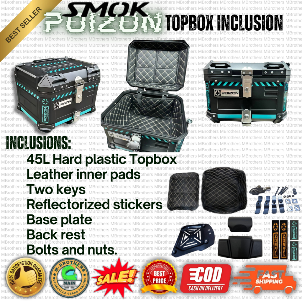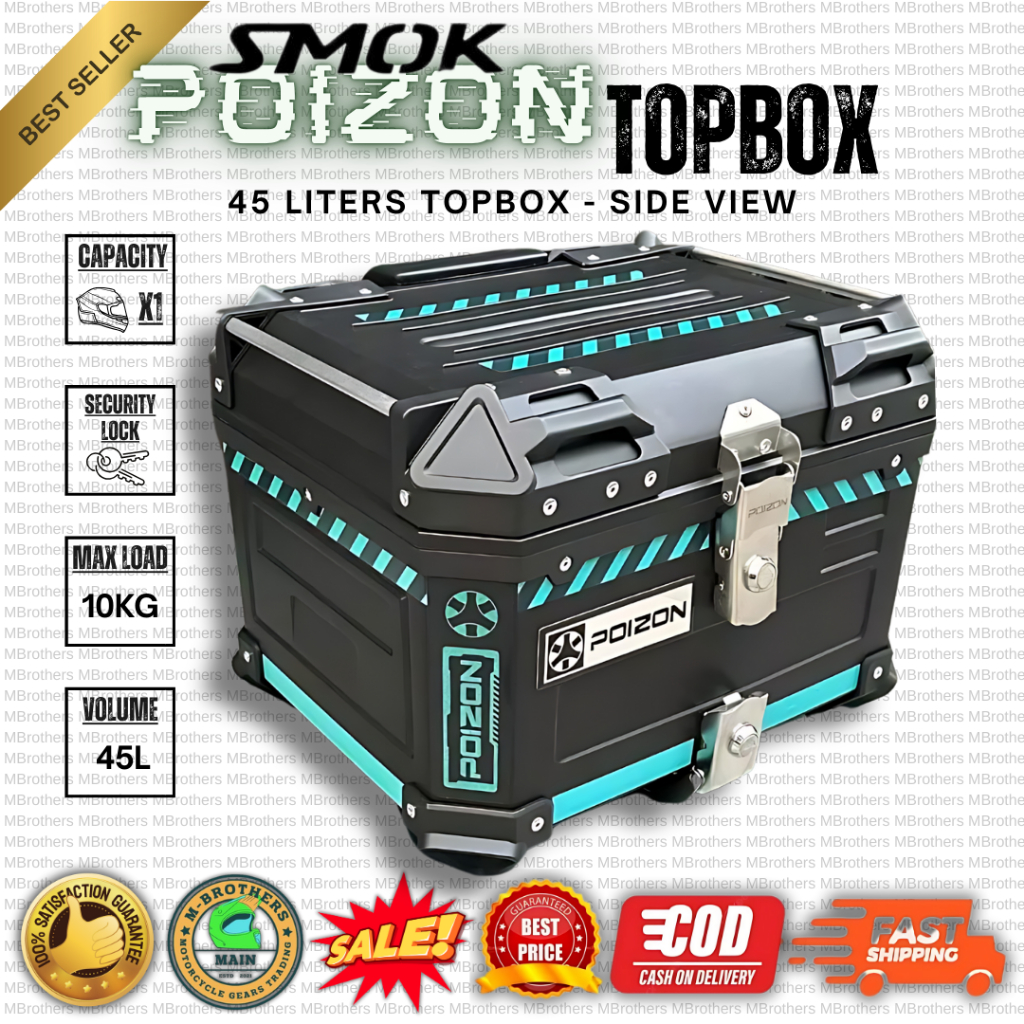 Topbox Only SMOK 45 Liters V2 Hard Plastic Top box Helmet Compartment for Motorcycle