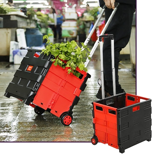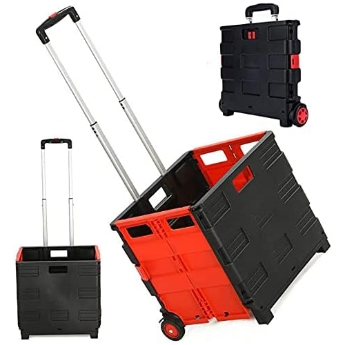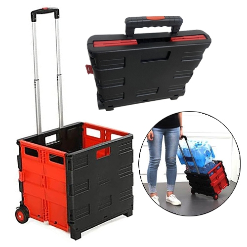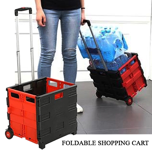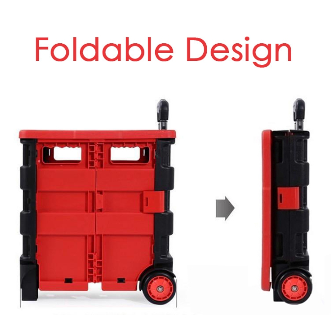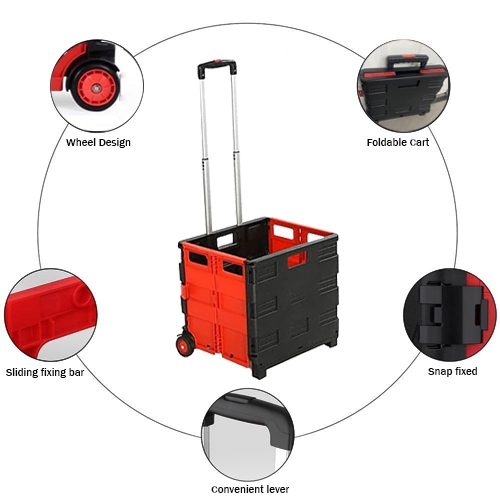 45L Tote Bin Collapsible Utility Cart Portable Shopping Cart Outdoor Camping Trolley Handcart
