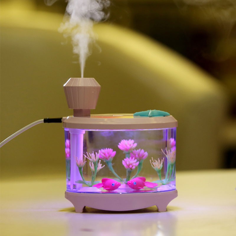 460ML Fish Tank Atomized Air Humidifier USB Mini Hydrating Steamed With Night Light