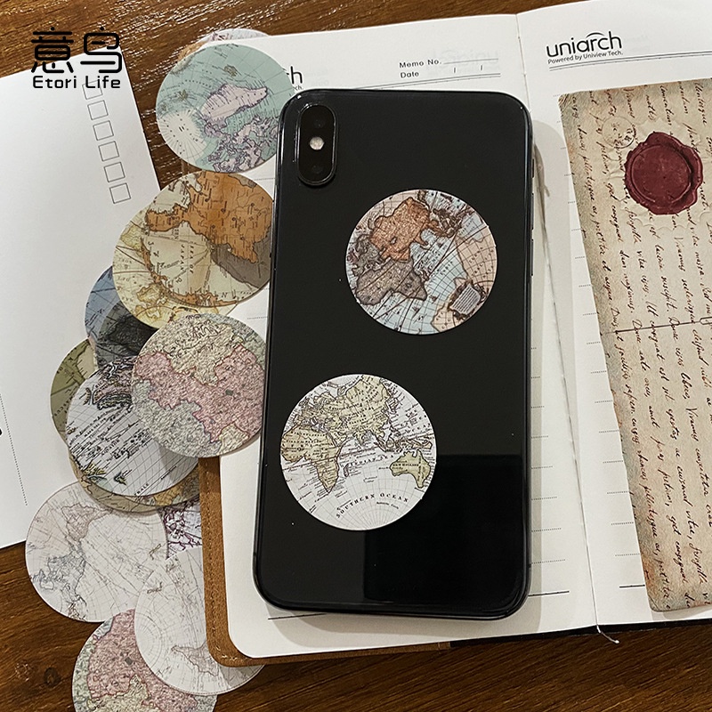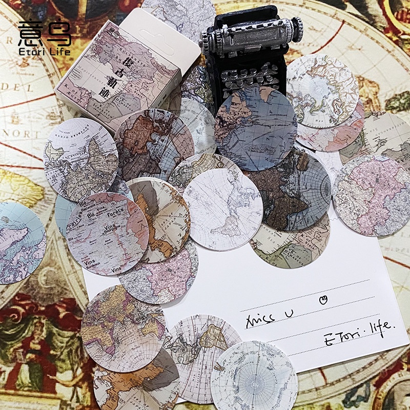 46pcs Vintage World Maps Scrapbook Paper Sticker Retro Decorative Stickers Diy Craft For Card Making Diary Planner Decor