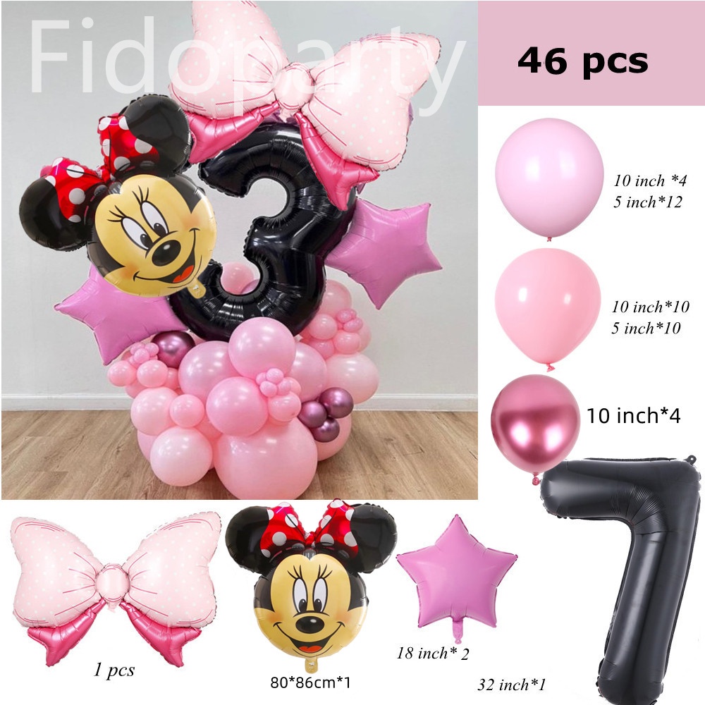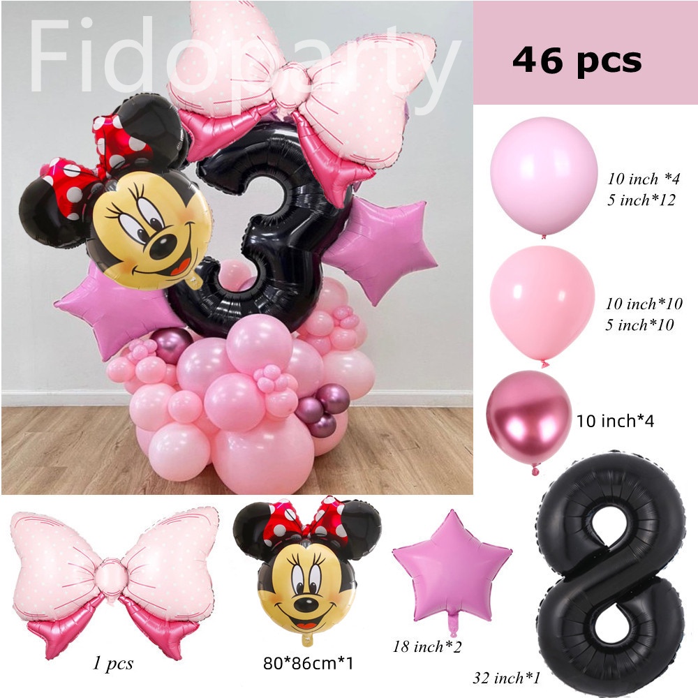46pcs/set Mickey Mouse Balloons Party Decorations 0-9 Number Balloon Macaron Latex Balloons Set Mickey Minnie Theme Decoration
