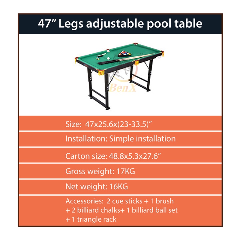 47x26 inches billiard table foldable liftable metal legs kids mini billiards table set pool table