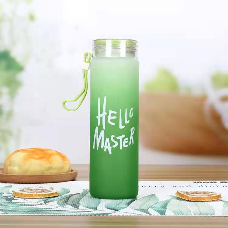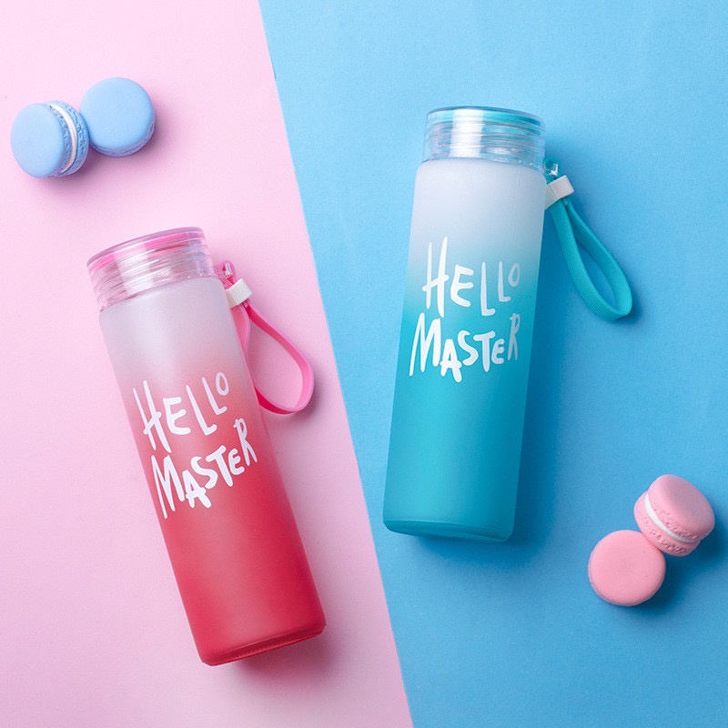 480ml Portable Gradient Color Frosted Water Tumbler Bottle Hello Master Glass Cup