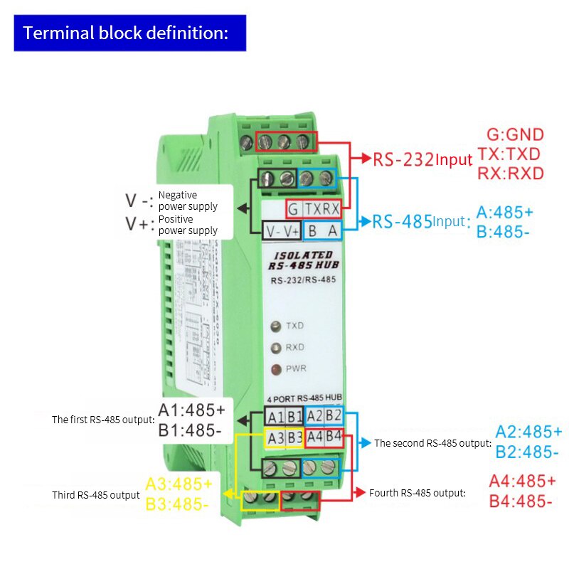 485 Hub 4 Port Optical Isolation 1 way RS232 to 4 Way RS485 Industrial Grade HUB Rail Type Module