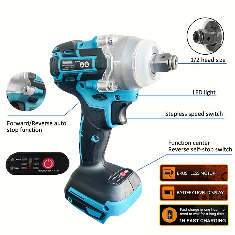48V 6.0Ah Power Impact Wrench Cordless Original Brushless Impact Wrench Tools 2 Battery Set