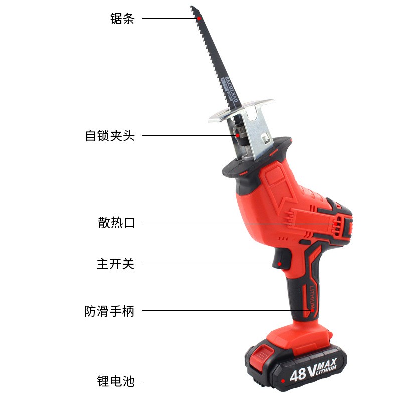 48V Cordless Lithium Battery Reciprocating Saw Wood/Metal Cutting Saw Saber Saw Portable Electric Sa