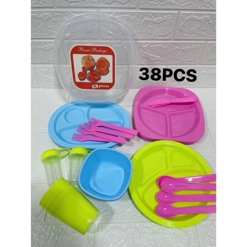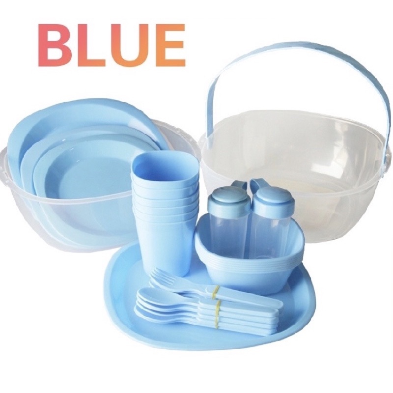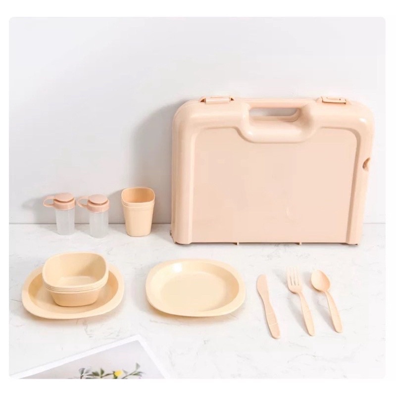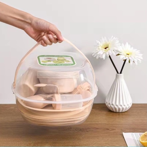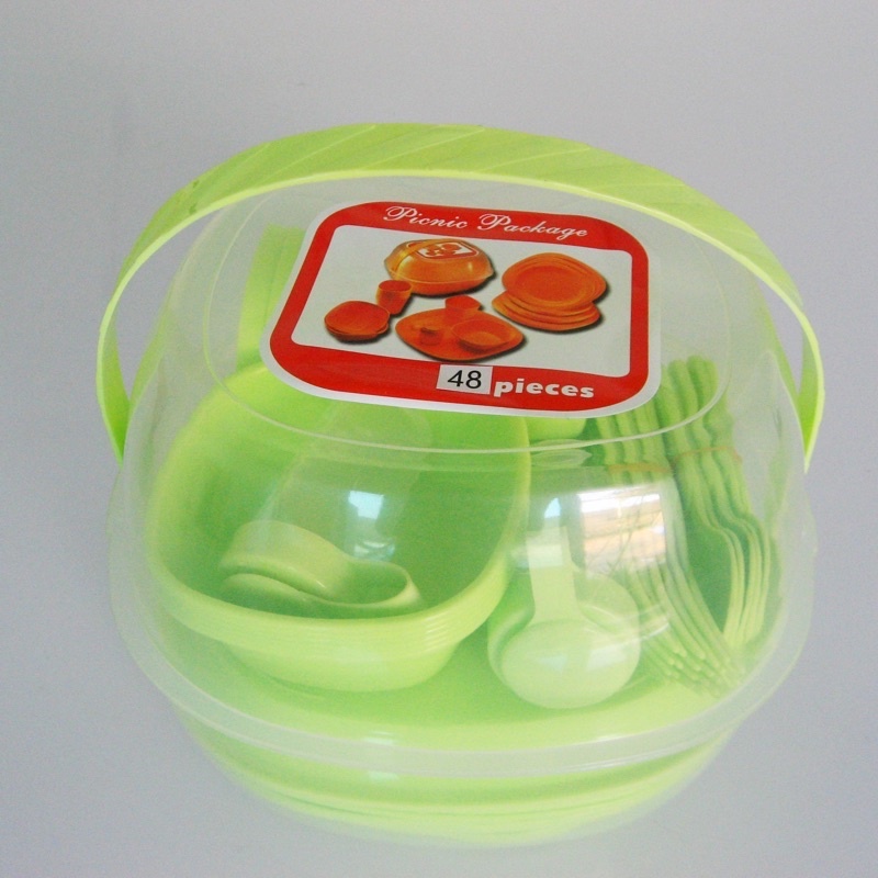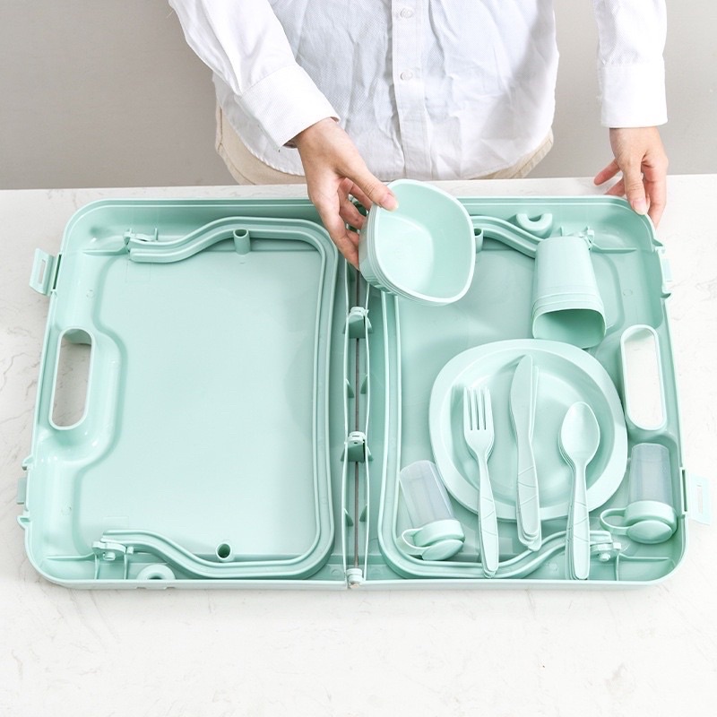 48pcs Picnic Outdoor tableware Camping Outdoor Plastic Reusable Tableware Dishes Set