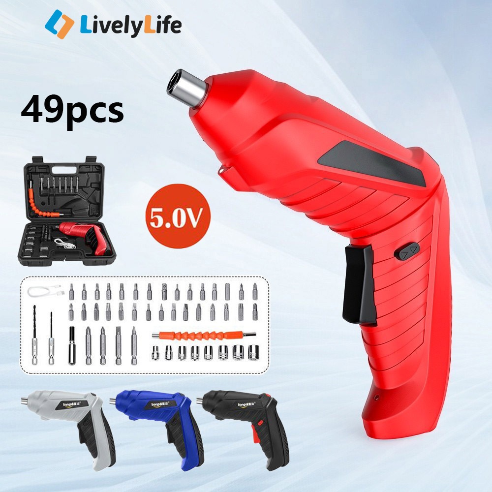 49pcs/5.0V Folding Electric Screwdriver Portable Cordless Screwdriver Tool Kit with LED Light