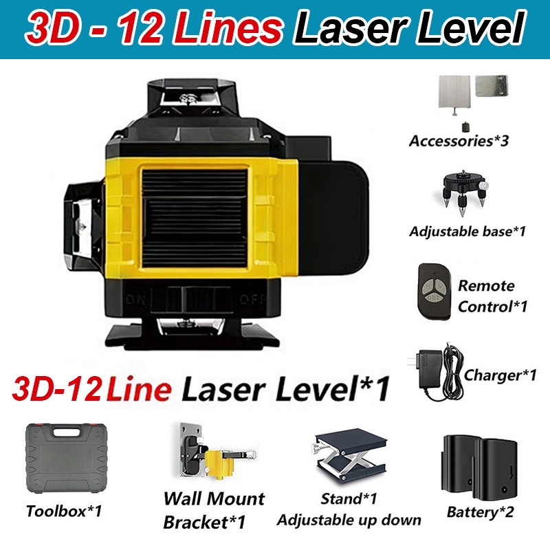 4D&16 Line Laser Level Green Light Cross Self-Leveling Rotary lazer vertical line
