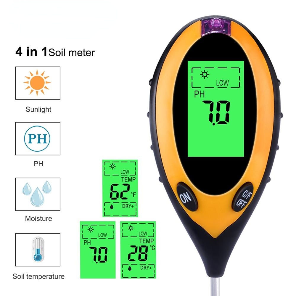 4In1 Digital Multifunctional Tester Soil Sunlight Acidity Moisture Meter For Plants Soil pH Tester