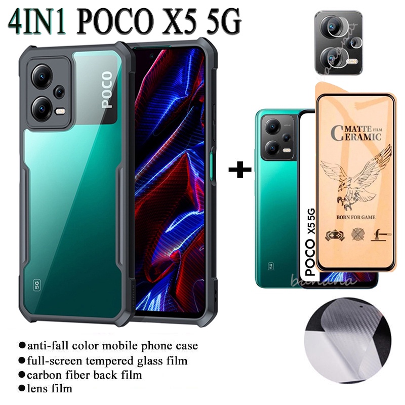 4In1 Matte Ceramic Tempered Glass for Xiaomi POCO X5 Pro 5G X3 NFC Pro M5 F3 Phone Case Silicone Shockproof Cover