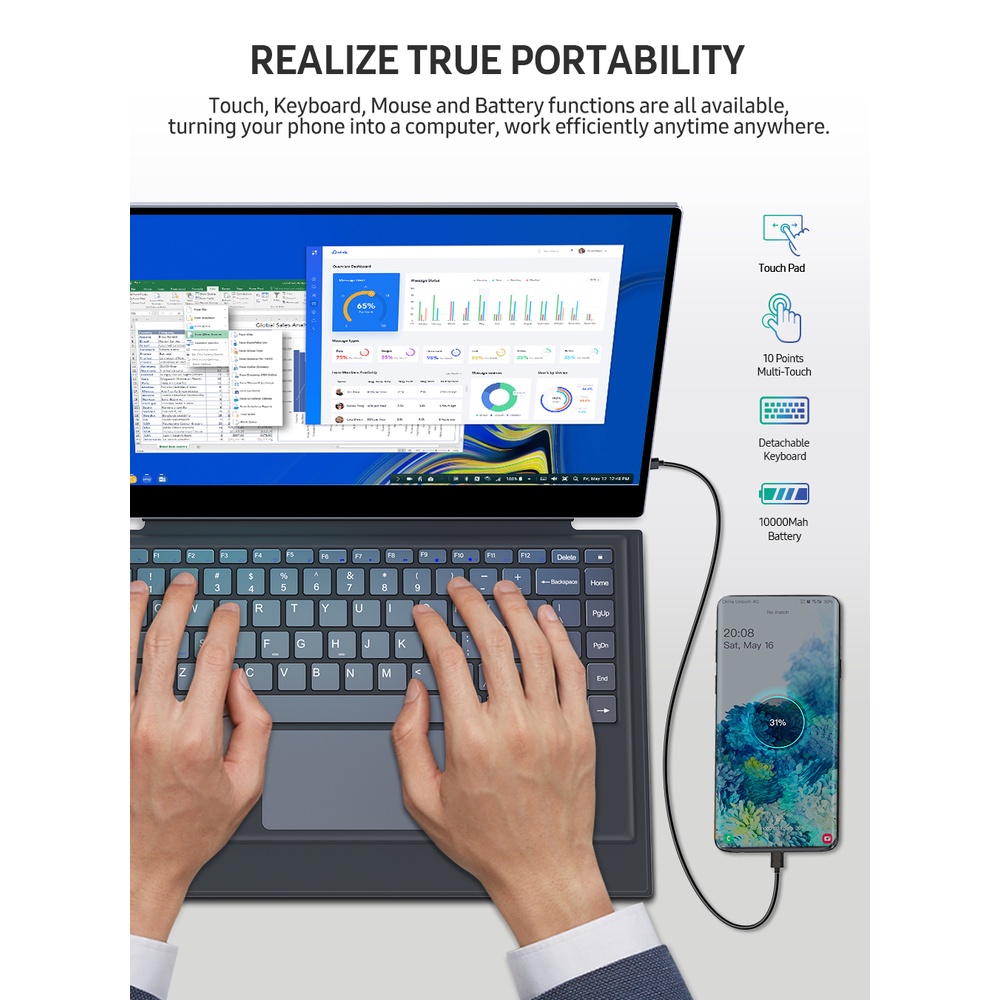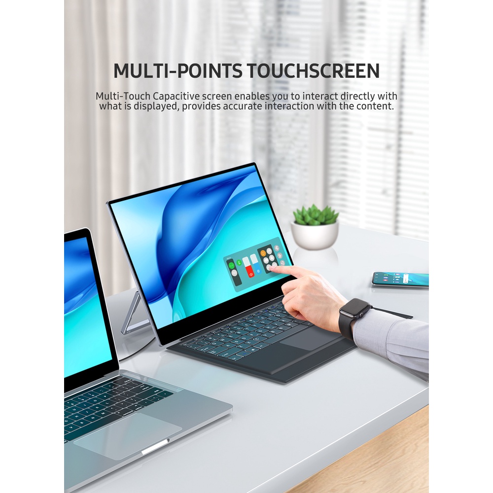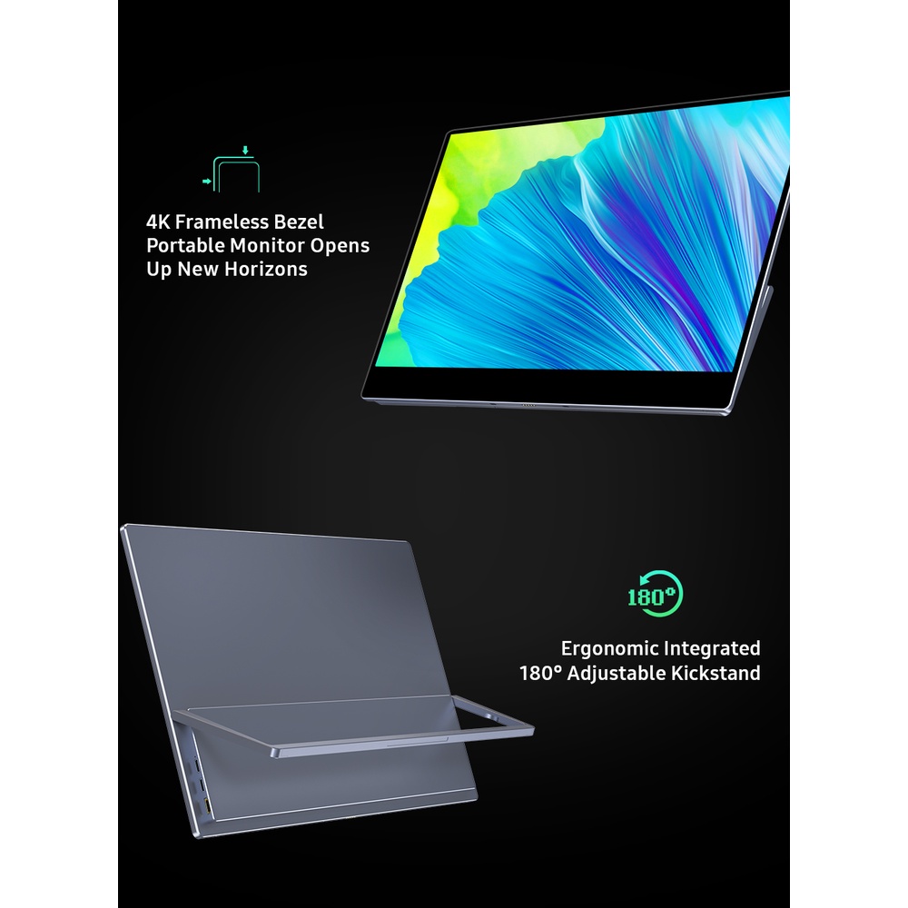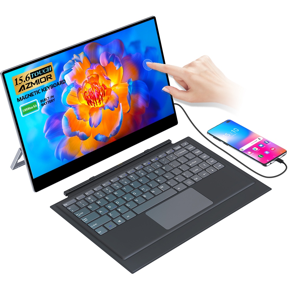 4K 15.6"Portable Monitor With Magnetic keyboard touchscreen 5400mAh Rechargeable type-c display