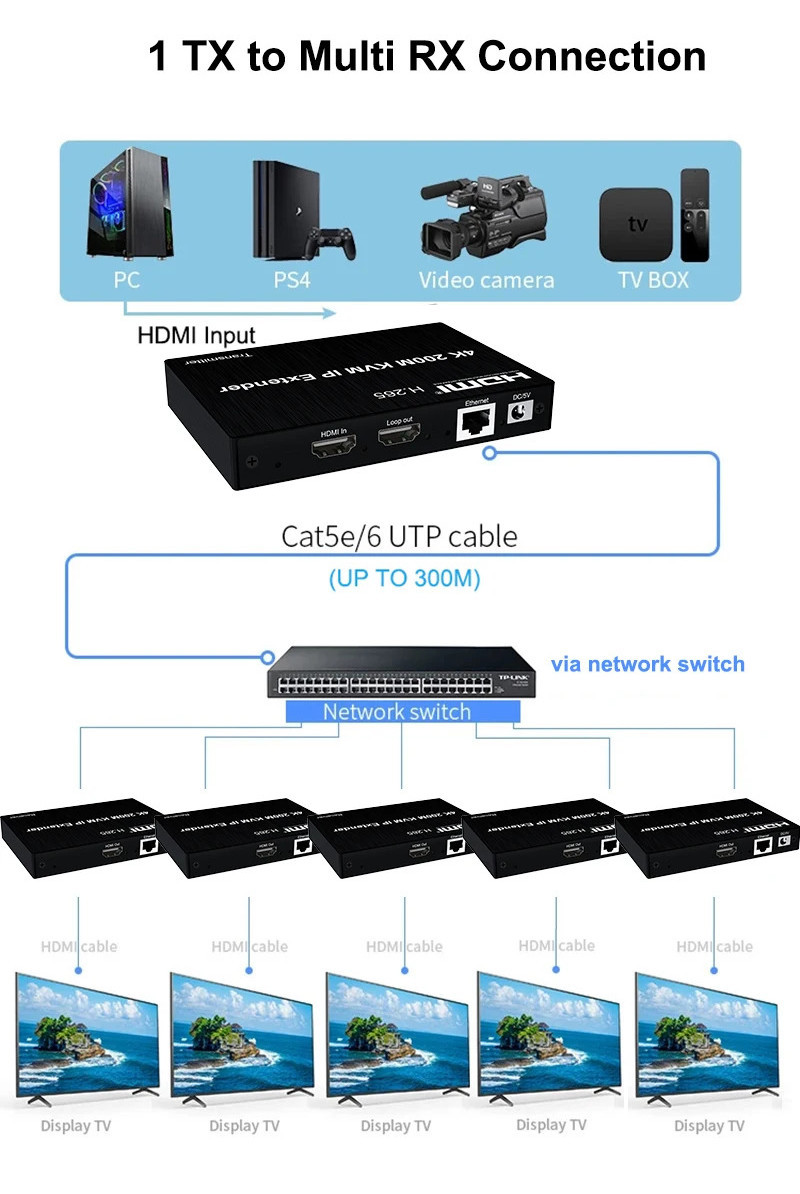 4K 200m HDMI KVM IP Ethernet Extender Over RJ45 Cat6 Cable Video Transmitter and Receiver Splitter Converter Via Network Switch