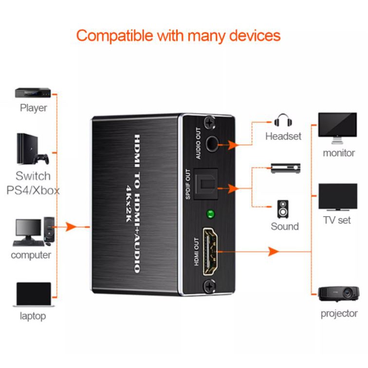 4K 2K HDMI-compatible Audio Extractor Stereo Extractor Converter Optical TOSLINK SPDIF + 3.5mm Audio