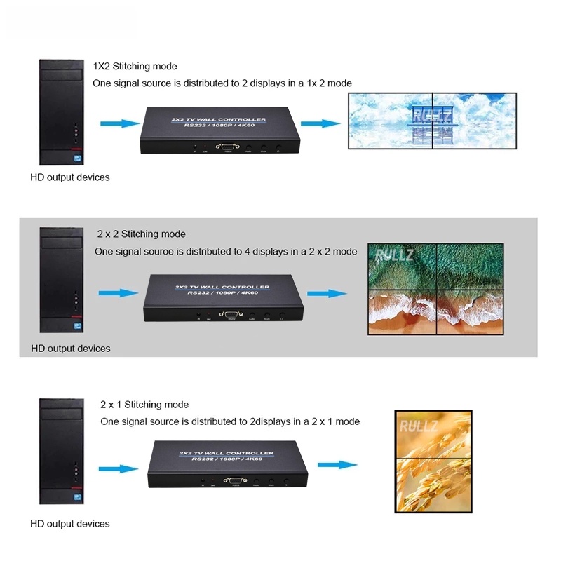 4K 60Hz 2x2 4 LED TV Wall Controller Multi Screen Stitching Processor 2x1 1x3 1x2 1x4 Conference Monitor Room Mall Video Splicer