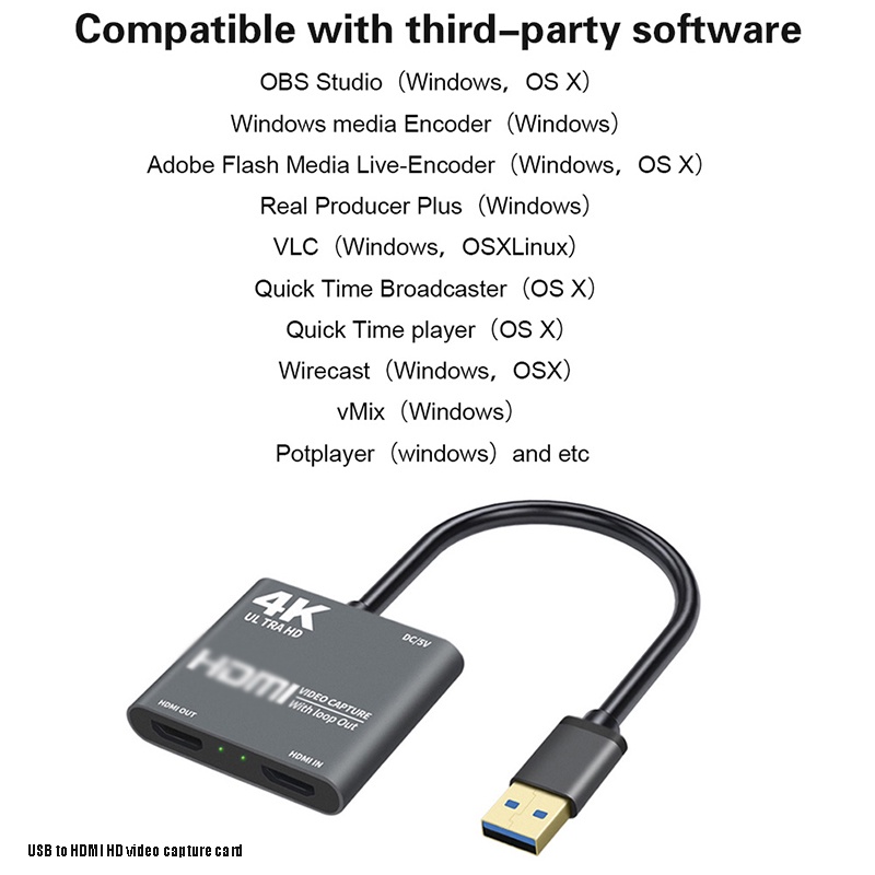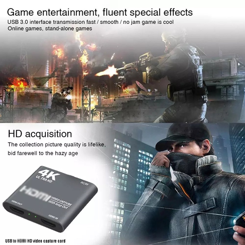4K 60fps HDMI Game Capture Card for HDMI to USB3.0 Video Audio Capture Full HD Record for Live Streaming Teaching Meeting
