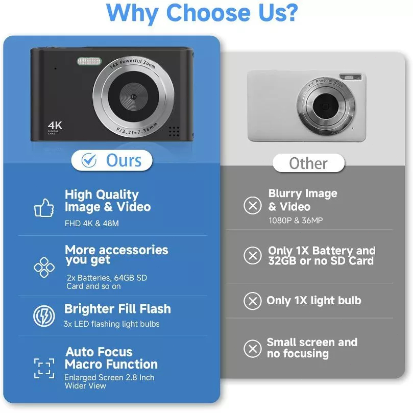 4K Digital Camera For Vlogging GIFT CCD BUY 1 TAKE 1Flash Mini Retro Pocket Digicam HD 16X Video CaM