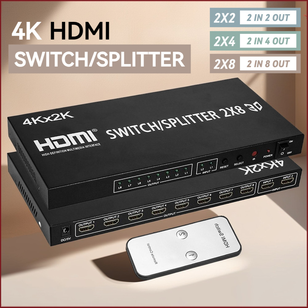 4K HDMI Switcher Splitter 2 In 8 out HDMI Switcher For PS4 DVD Camera Laptop PC To Multi TV Monitor