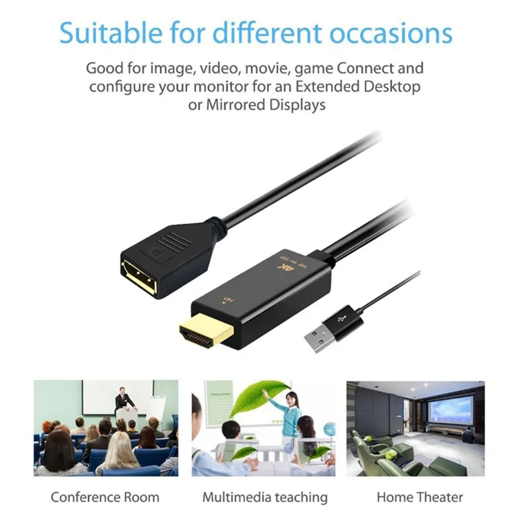4K HDMI to DisplayPort Adapter with USB Power 4K X 2K@60Hz HDMI Male to DP Female Cable