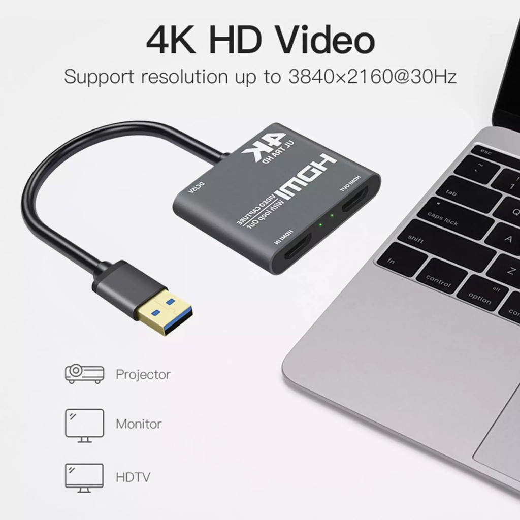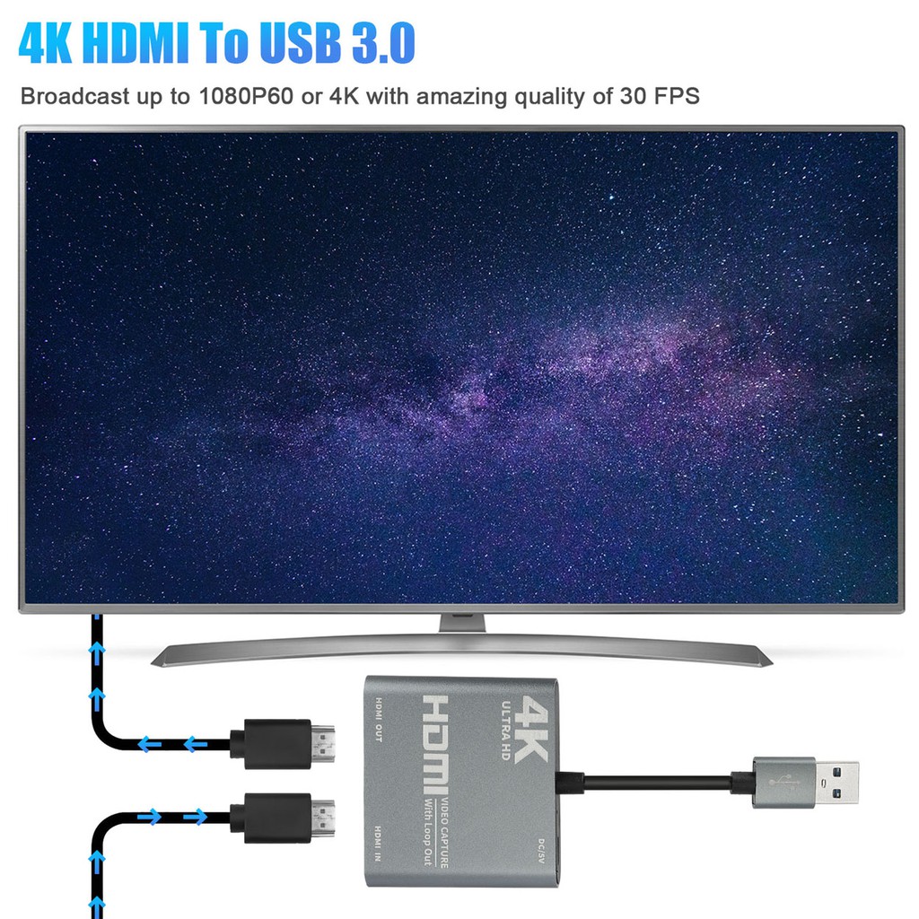 4K HDTV to USB 3.0 Video Capture Card Loop Out Game Recorder for 1080P Live Streaming