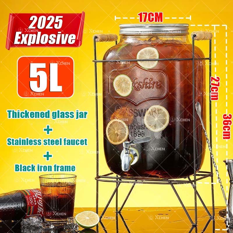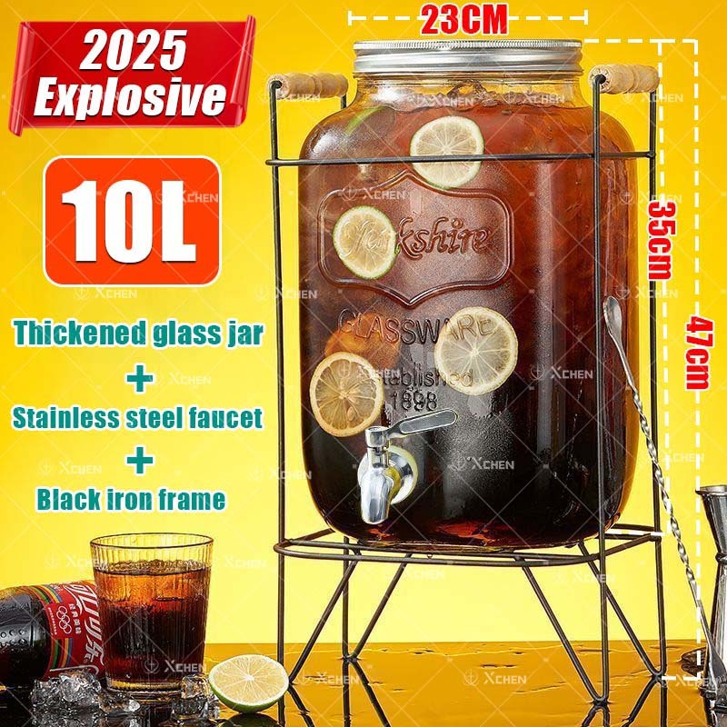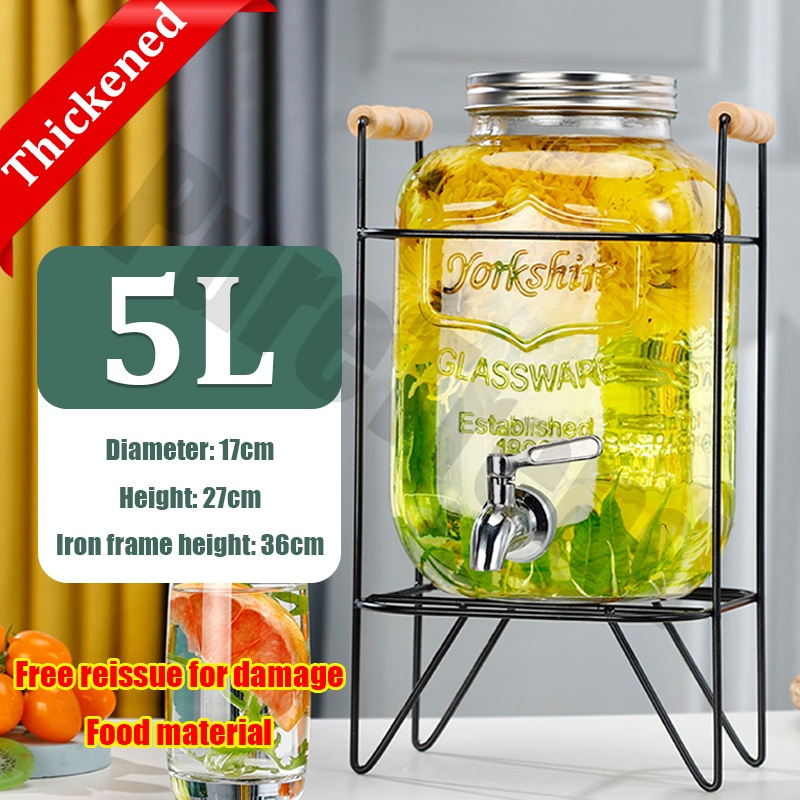 4L 5L 8L 10L Juice Drink Glass Jar Dispenser with Stand and Faucet Beverage Water Dispenser