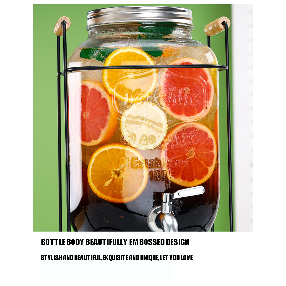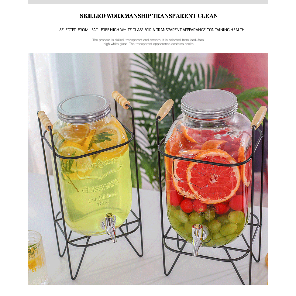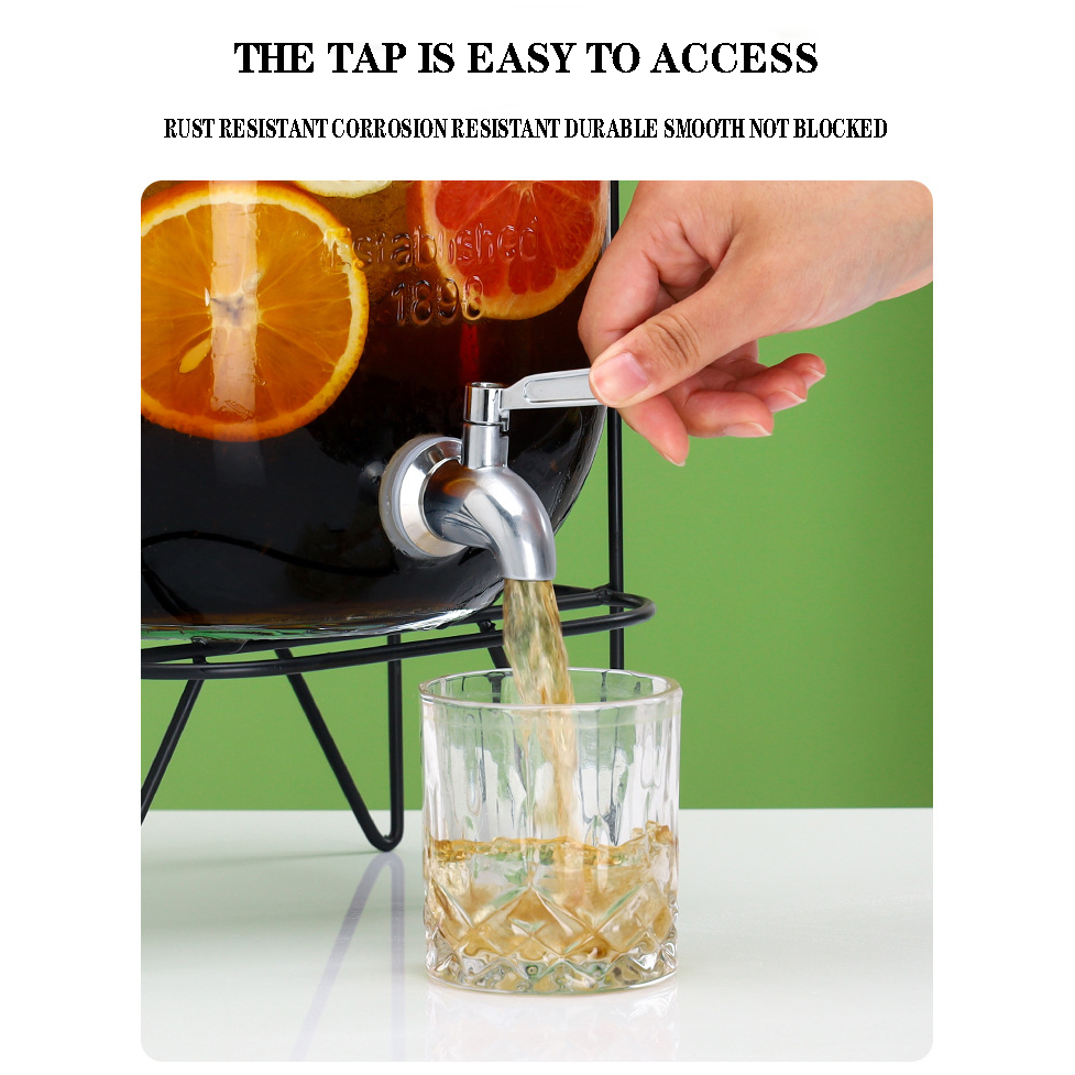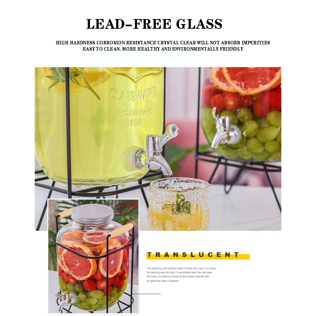 4L 5L 8L 10L Juice Drink Glass Jar Dispenser with Stand and Faucet