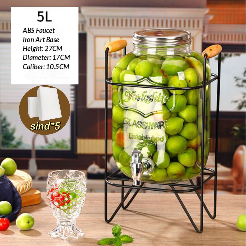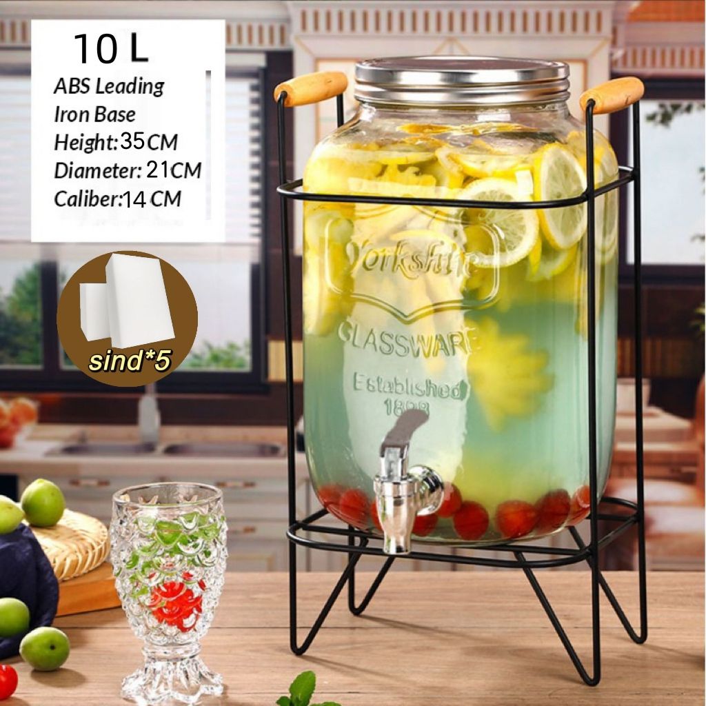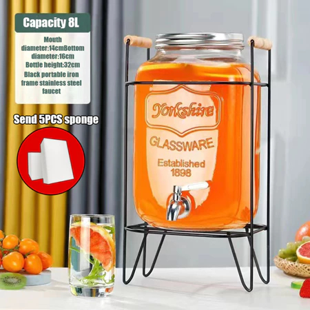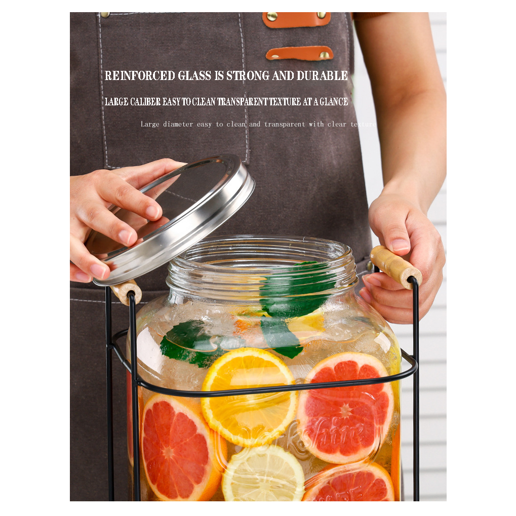 4L 5L 8L 10L Juice Drink Glass Jar Dispenser with Stand and Faucet