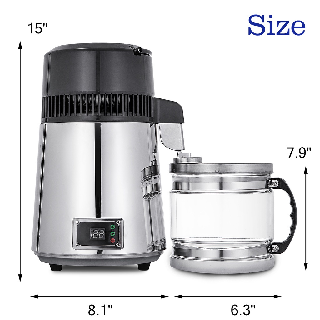 4L Digital Display Pure Water Distiller Filter Stainless Steel Electric Water Distilled Machine Distillation Purifier